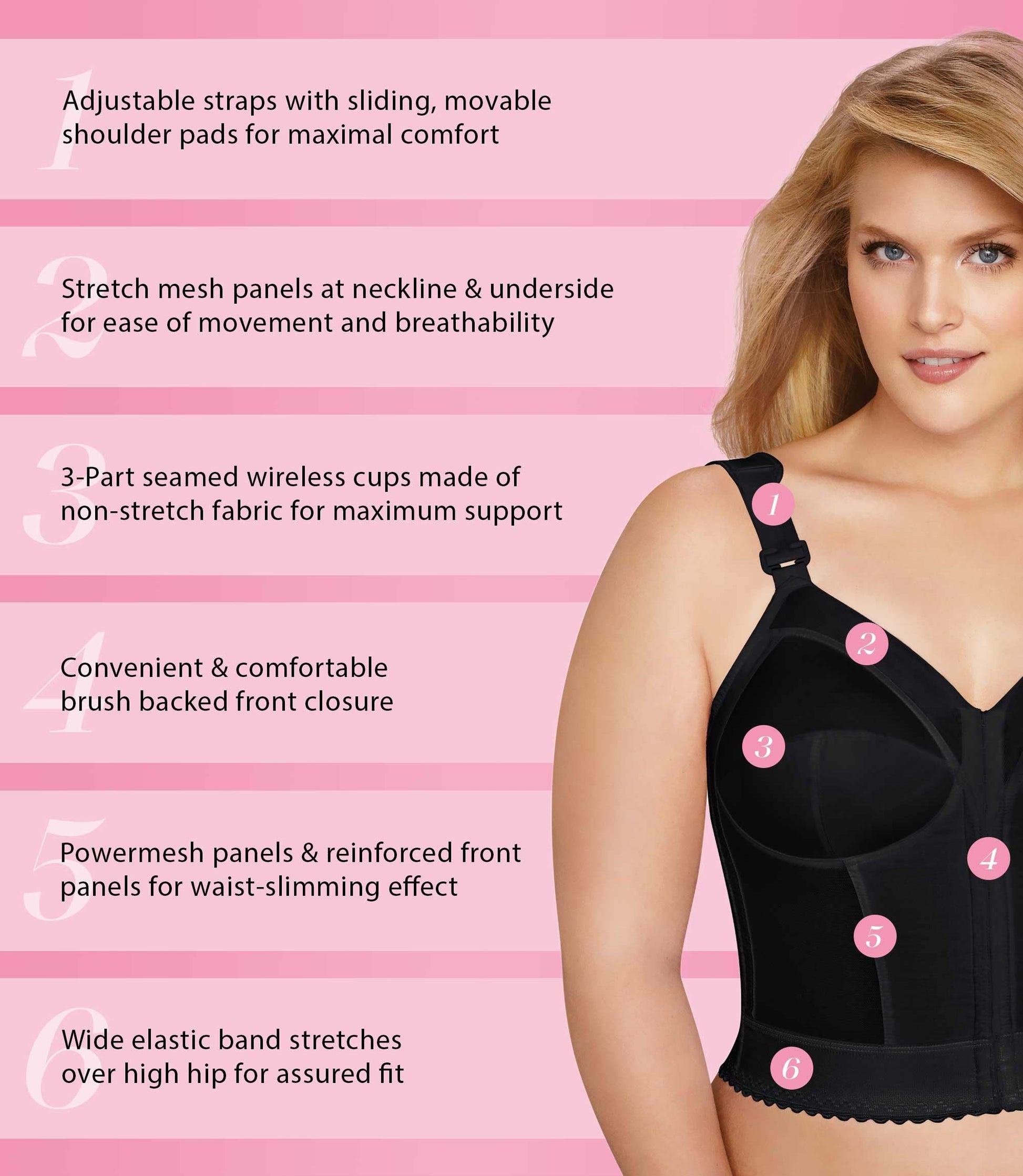 Exquisite Form womens Exquisite Form Fully Women's Front Close Longline Posture #5107530 Bra, Black, 46DD US