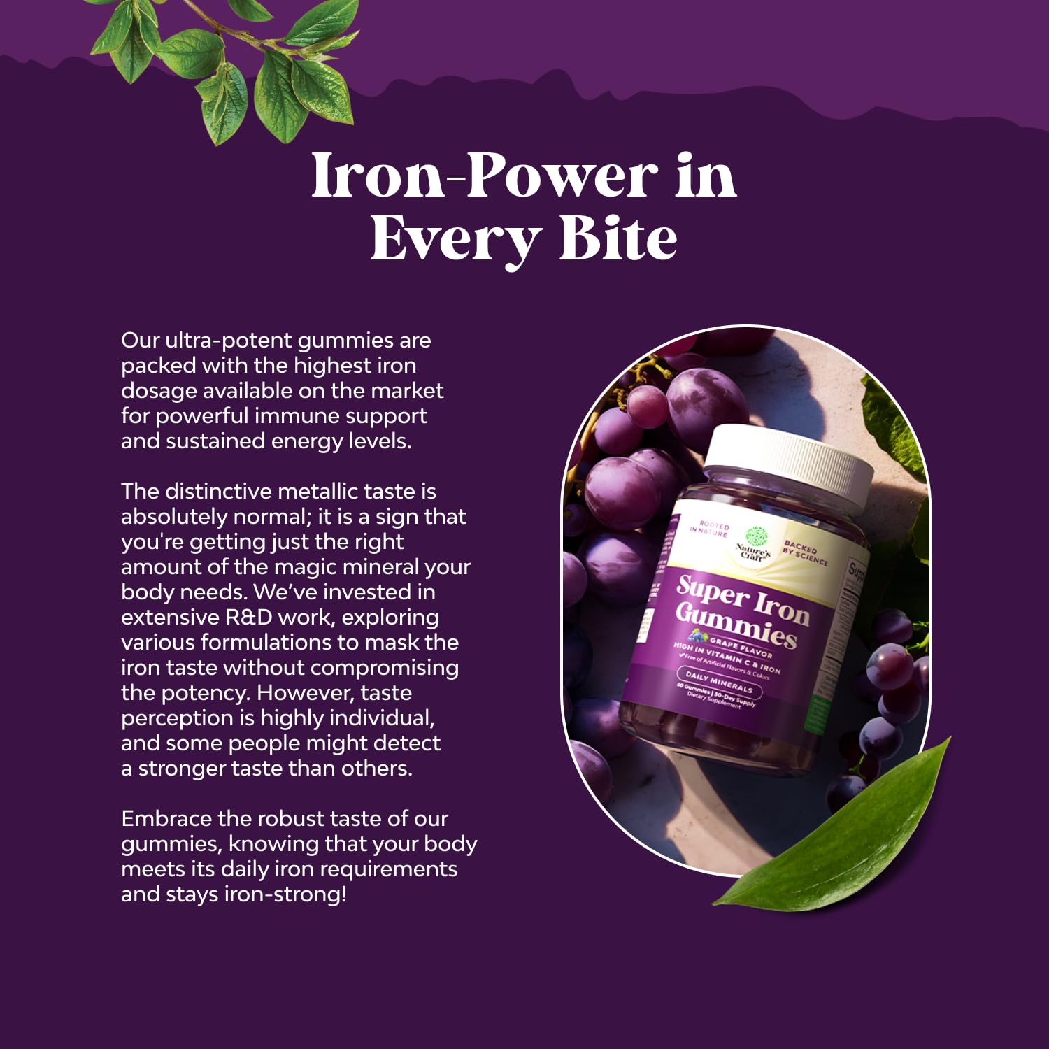 • Maximum Benefit Formula - Feel the power of our iron gummy vitamins for women and men made with super potent iron with vitamin c to help your body absorb the minerals it needs for daily function