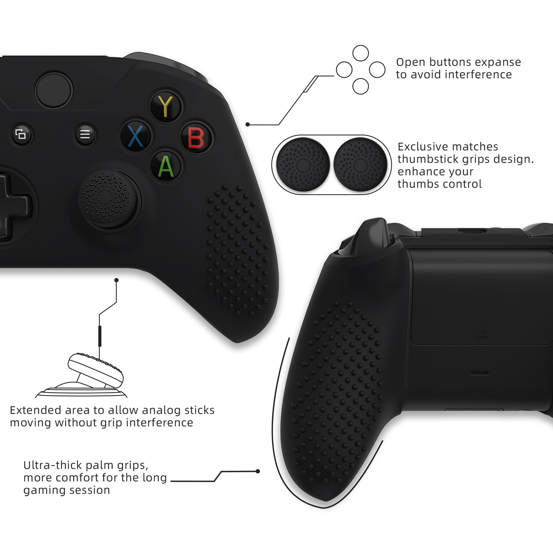 eXtremeRate PlayVital Soft Anti-Slip Silicone Controller Cover Skins Thumb Grips Caps Protective Case for Xbox One X/S Controller (Model 1708)- Black