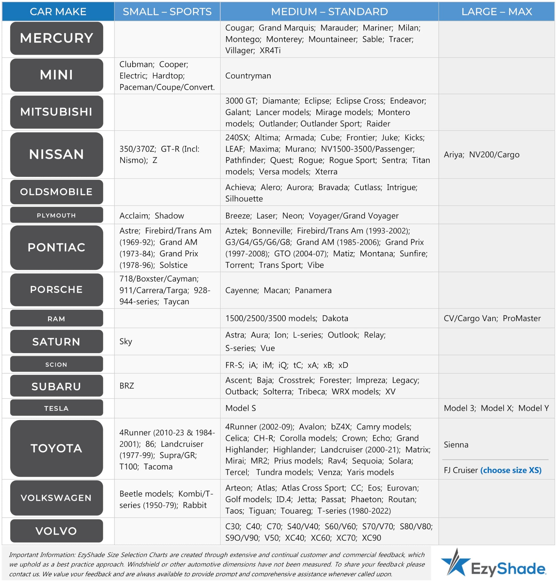 EzyShade Windshield Sun Shade with Shield-X Reflective Technology. See Size-Chart with Your Vehicle. Foldable 2-Piece Car Sunshades Reflect UV Sun and Heat and Protect Your Car. Standard (Medium) Size