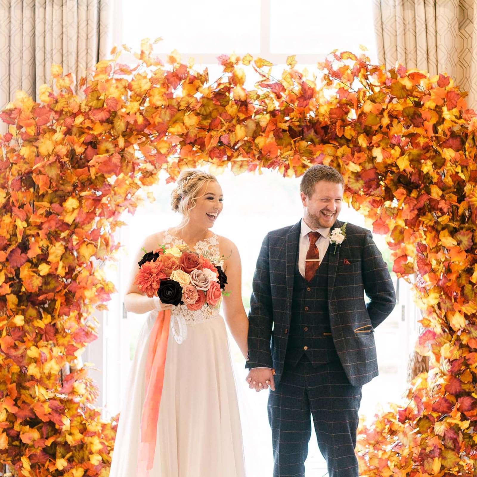• Orange Roses Artificial Flowers Set: A combo box packs a variety of flowers as a Halloween or autumn fall season themed wedding. A total of 18 fake flowers and 12 accessories, including mixed silk and foam orange roses artificial flowers with stems