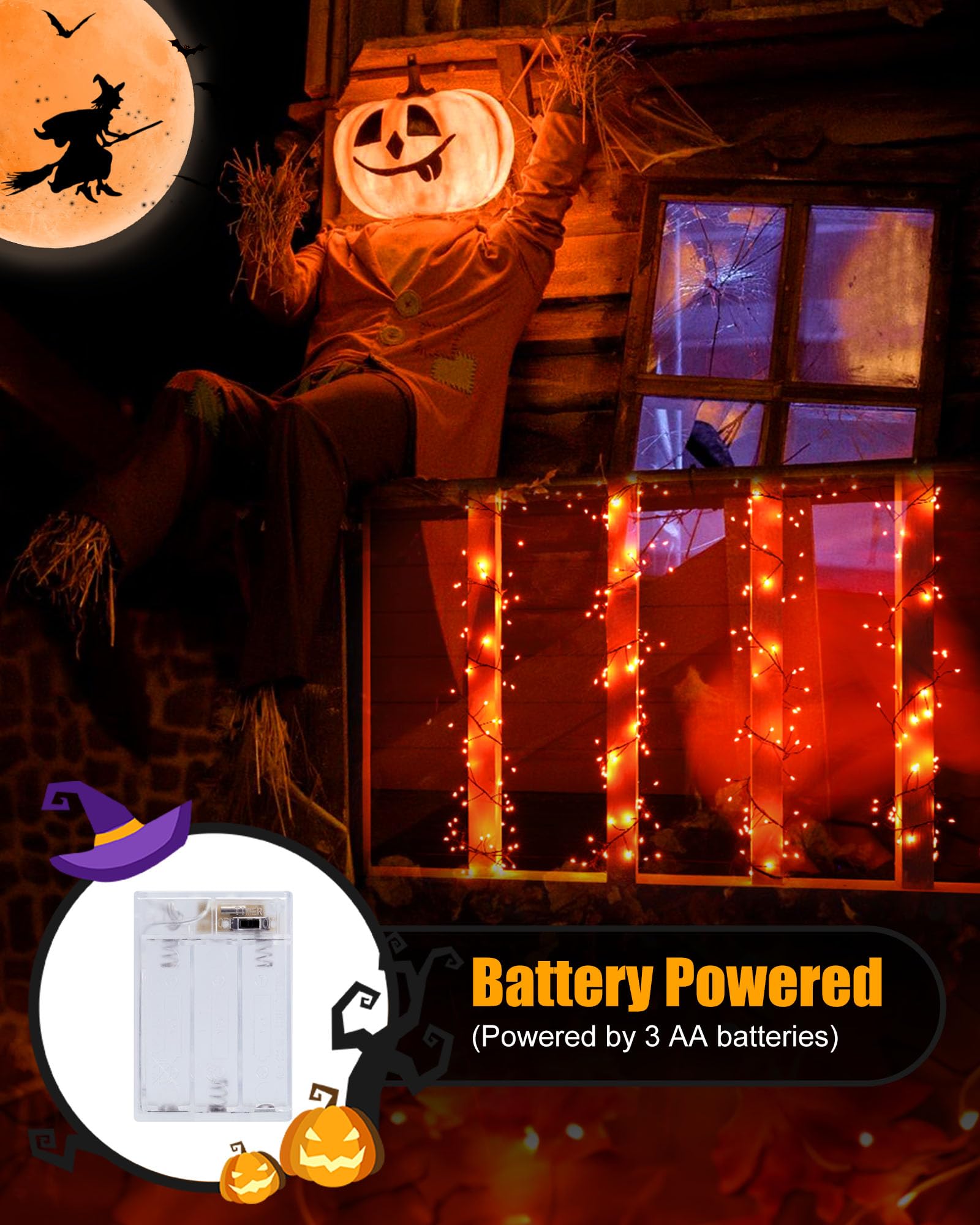Fairy Lights Battery Operated, Twinkle String Lights Waterproof Silver Wire 5 Feet 60 Led Firecracker Starry Lights for DIY Wreath Home Party Bedroom Mason Jar Indoor Halloween Decoration, Orange