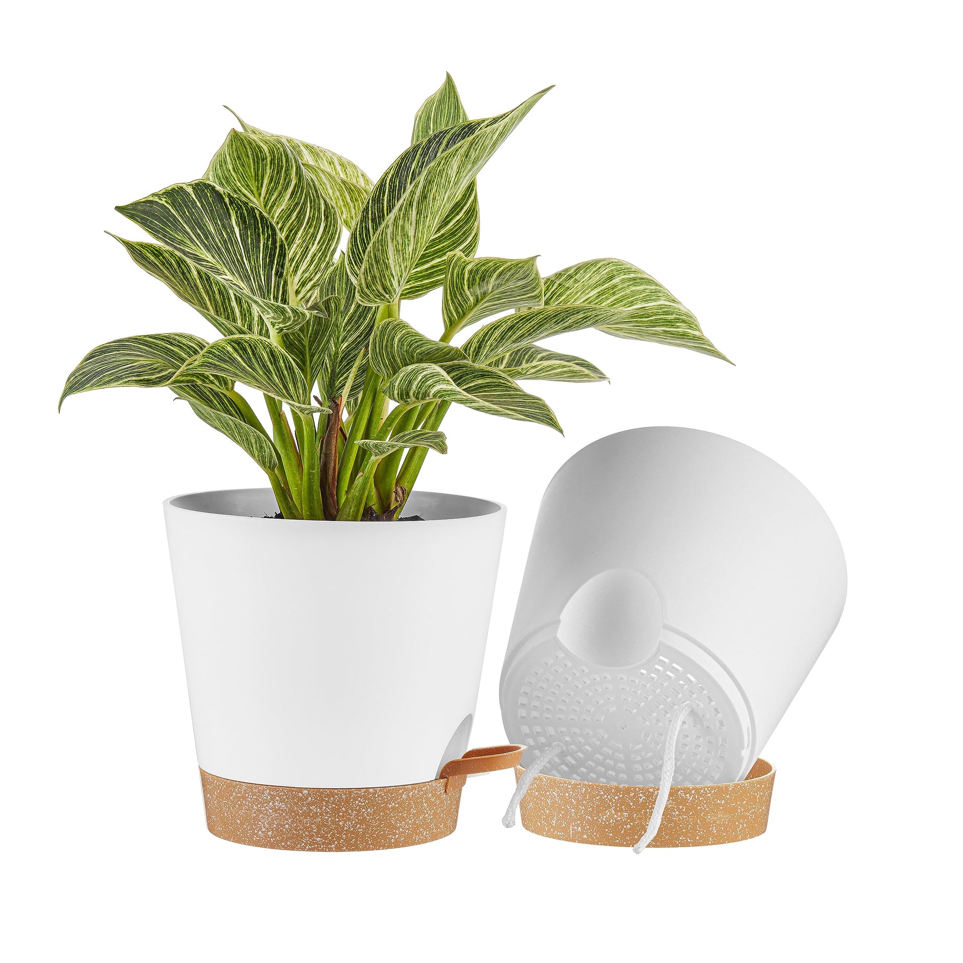 FaithLand 2-Pack 8 Inch Planter Pots for Indoor Outdoor Plants, Self Watering Flower Pots with Deep Reservoir, White with Terracotta …