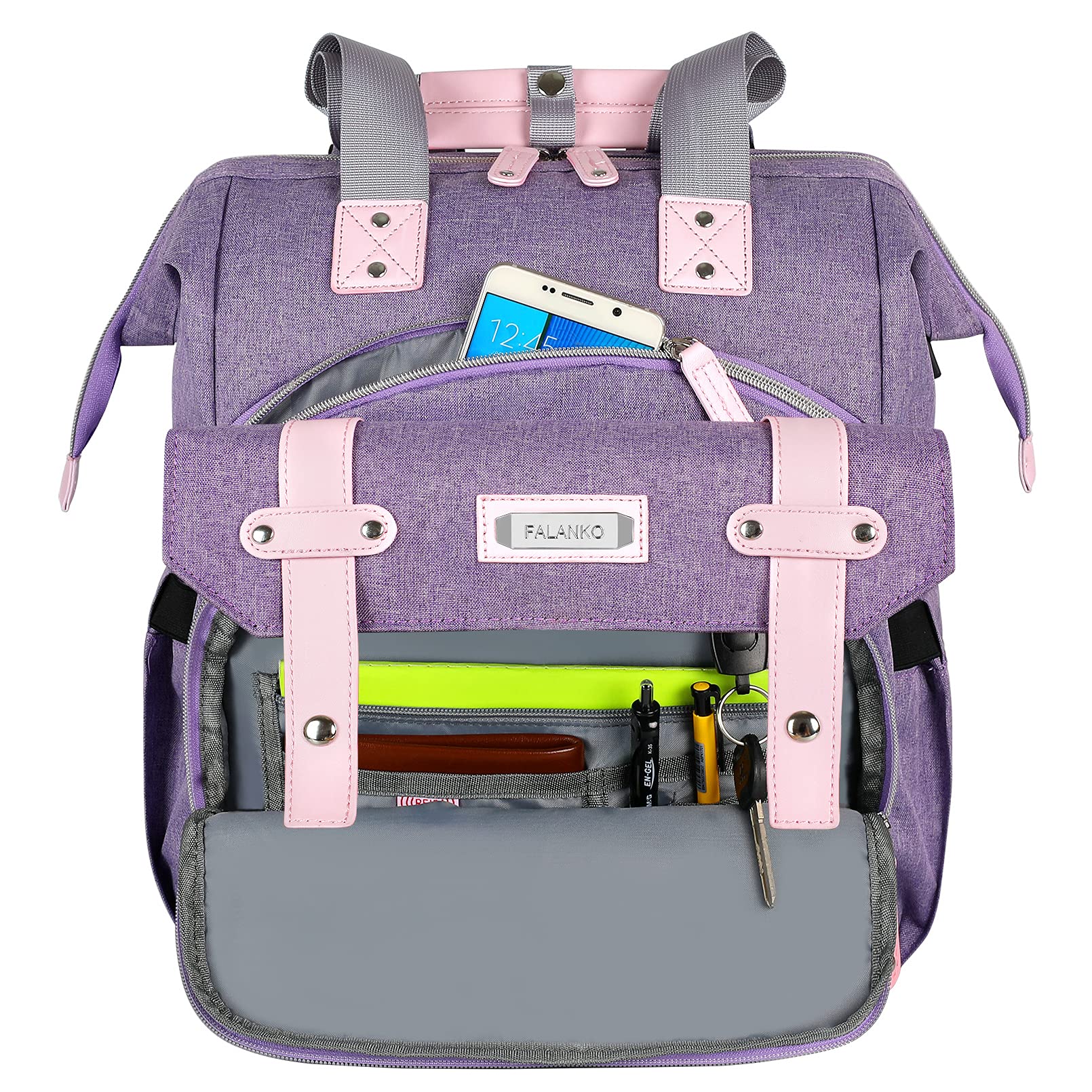 FALANKO Laptop Backpack for Women, Anti Theft Backpacks with USB Charging Port RFID Anti Theft Water Resistant,Wide Top Open Work Teacher College Travel Computer Bag for Woman Fits 15.6 Inch Laptop