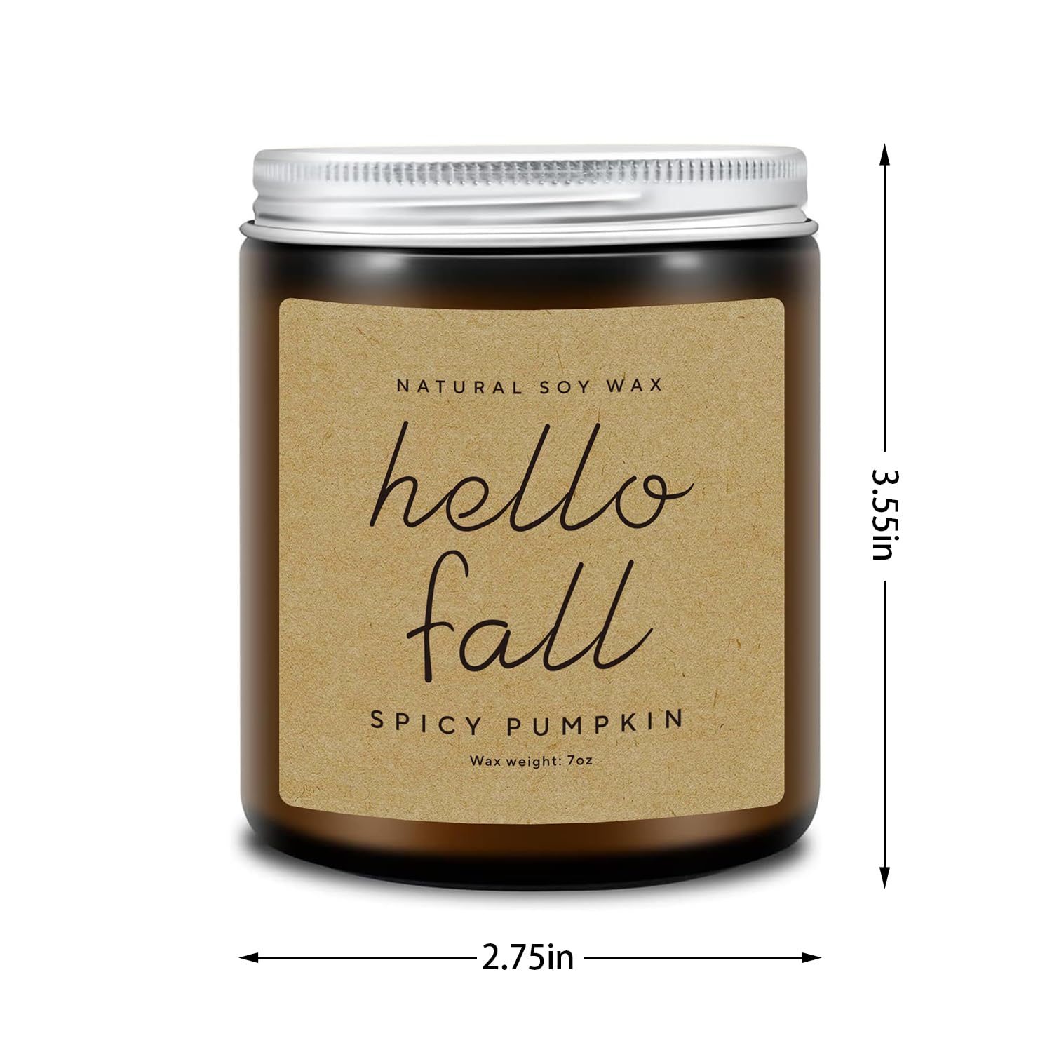 • πŸŽƒ CANDLE INFO - Scent notes: Spicy Pumpkin Candles | Jar Size: 3.55 x 2.75 x 2.75' | 7oz Net Weight | 40+ Hour Burn Time.