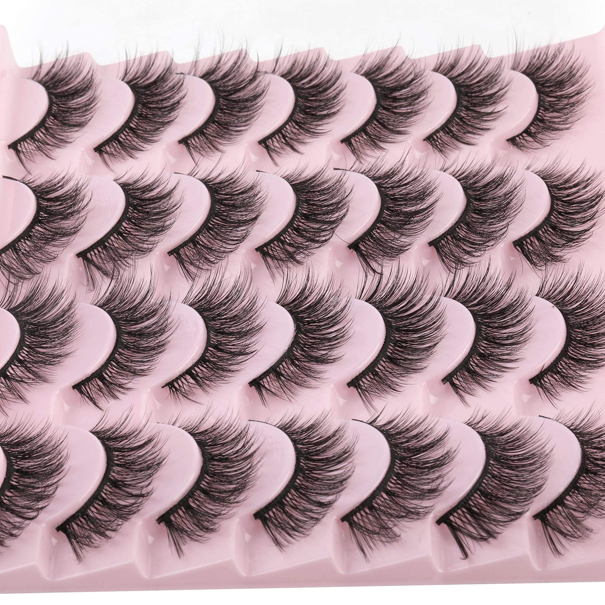 False Eyelashes 14mm Faux 3D Mink Lashes Natural Look Cat Eye Wispy Lashes Pack by Kiromiro, 14 Pairs