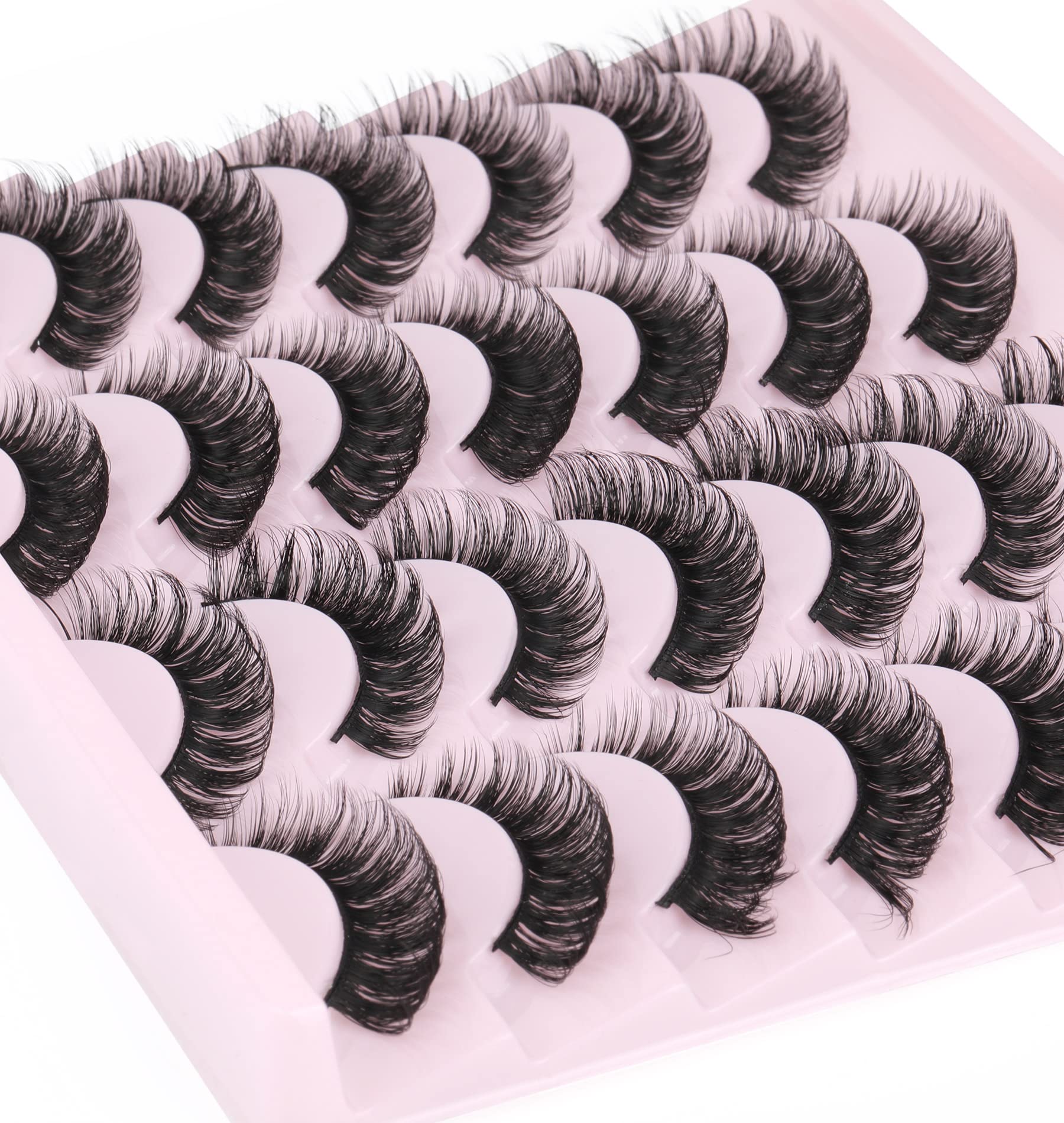 False Eyelashes Russian Strip Lashes Volume Fake Eyelashes Extension D-Curly Wispy Handmade Soft Reusable 14 Pairs Lashes Pack