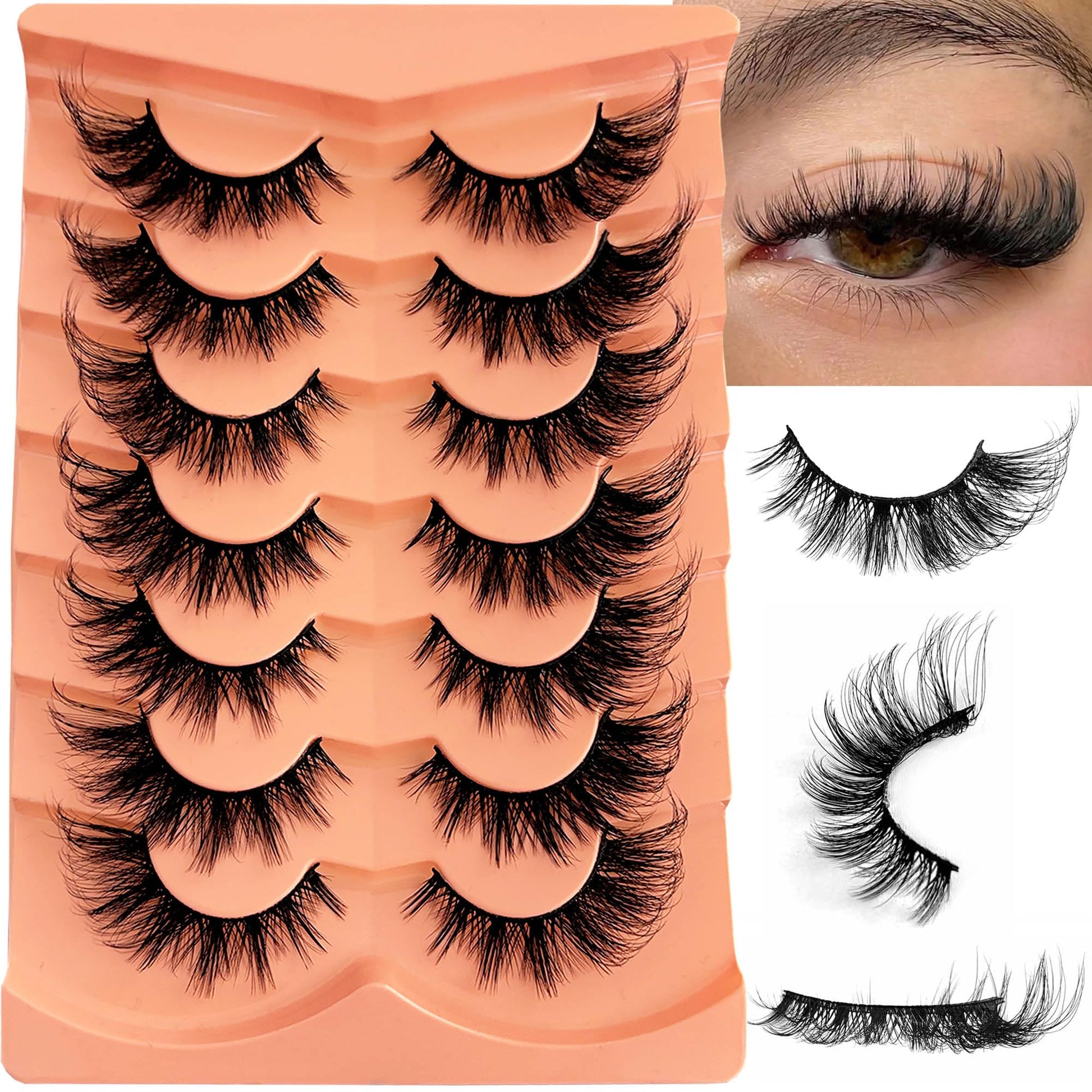False Eyelashes Strip Lashes Wispy Yasnai Cat Eye Lash Fake Eyelash Natural Look Volume 18mm Mink Fluffy Fox Eyelashes 7 Pairs Pack 9D