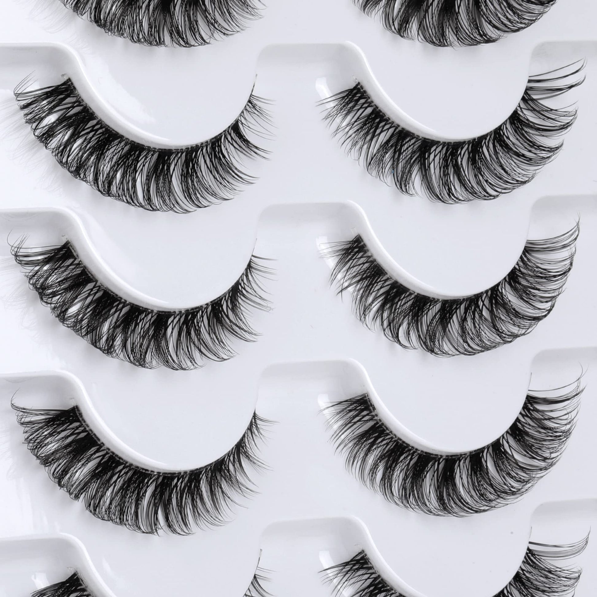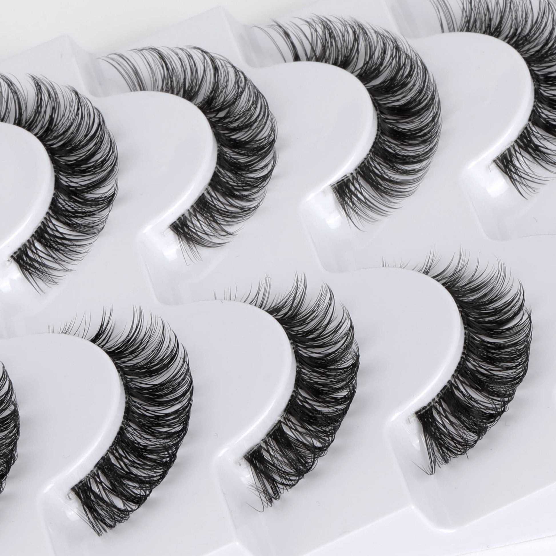 False Eyelashes Wispy Natural C Curl Strip Lashes Transparent Lash Bands Fluffy Cat Eye Lashes 7 Pairs by Yawamica
