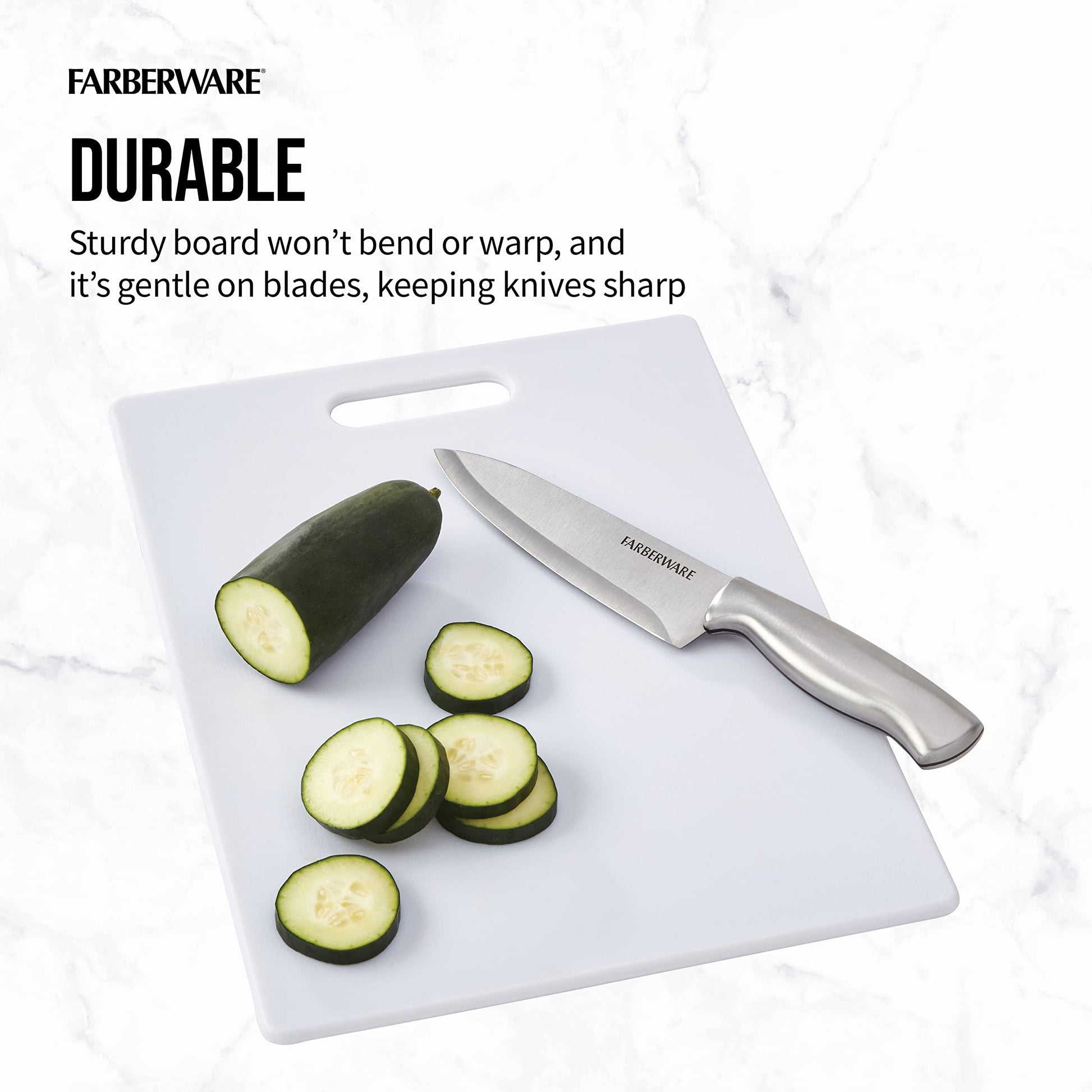 Farberware Large Cutting Board, Dishwasher- Safe Plastic Chopping Board for Kitchen with Easy Grip Handle, 11-inch by 14-inch, White