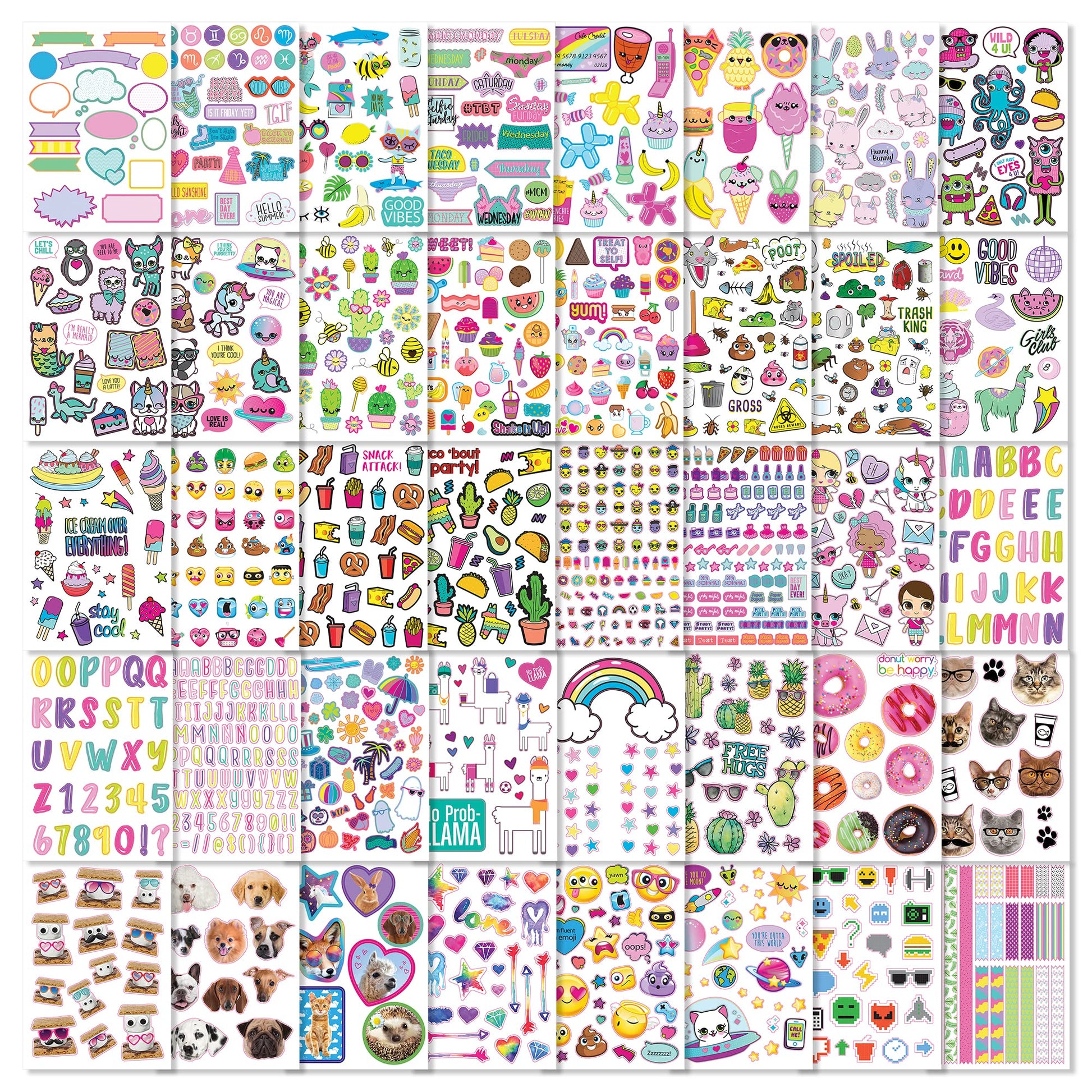 • 1000+ Fun Assorted Stickers - The Fashion Angels sticker collection includes 1000+ high quality stickers with multiple themes. Kids and teens will enjoy cute trendy sticker designs like colorful letters, monsters, donuts, ice cream, taco, rainbows, tropical plants, space objects, puppies, kittens, emojis, unicorns and more.