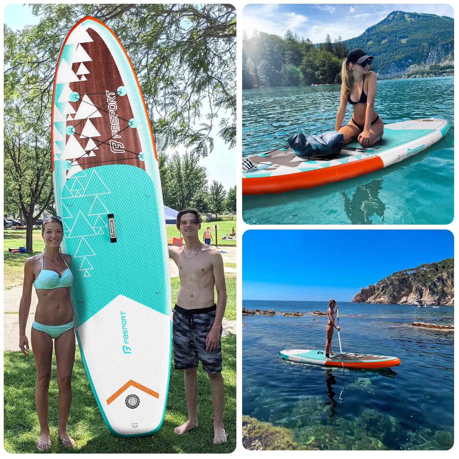 • VERSATILE PORTABLE STAND UP PADDLE BOARD - Easy storage - packing down to the carrying bag.FBSPORT pandle board can be used in different water including sea,lakes, rivers or small wavy ocean. And the sup boards is great for fishing, surfing, paddling, cruising, yoga, sightseeing in water.