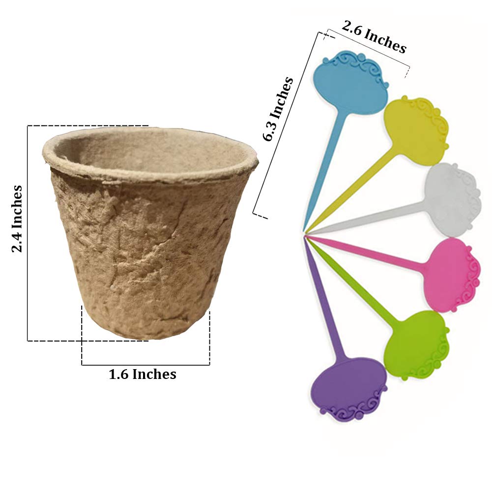 FDGARDEN Biodegradable Peat Pots for seedlings, 100 Pack Plant Seed Starter Pots Kit, 2.36inch Succulent Planter Nursery Pots with 10 Plant Markers, Garden Germination Kits