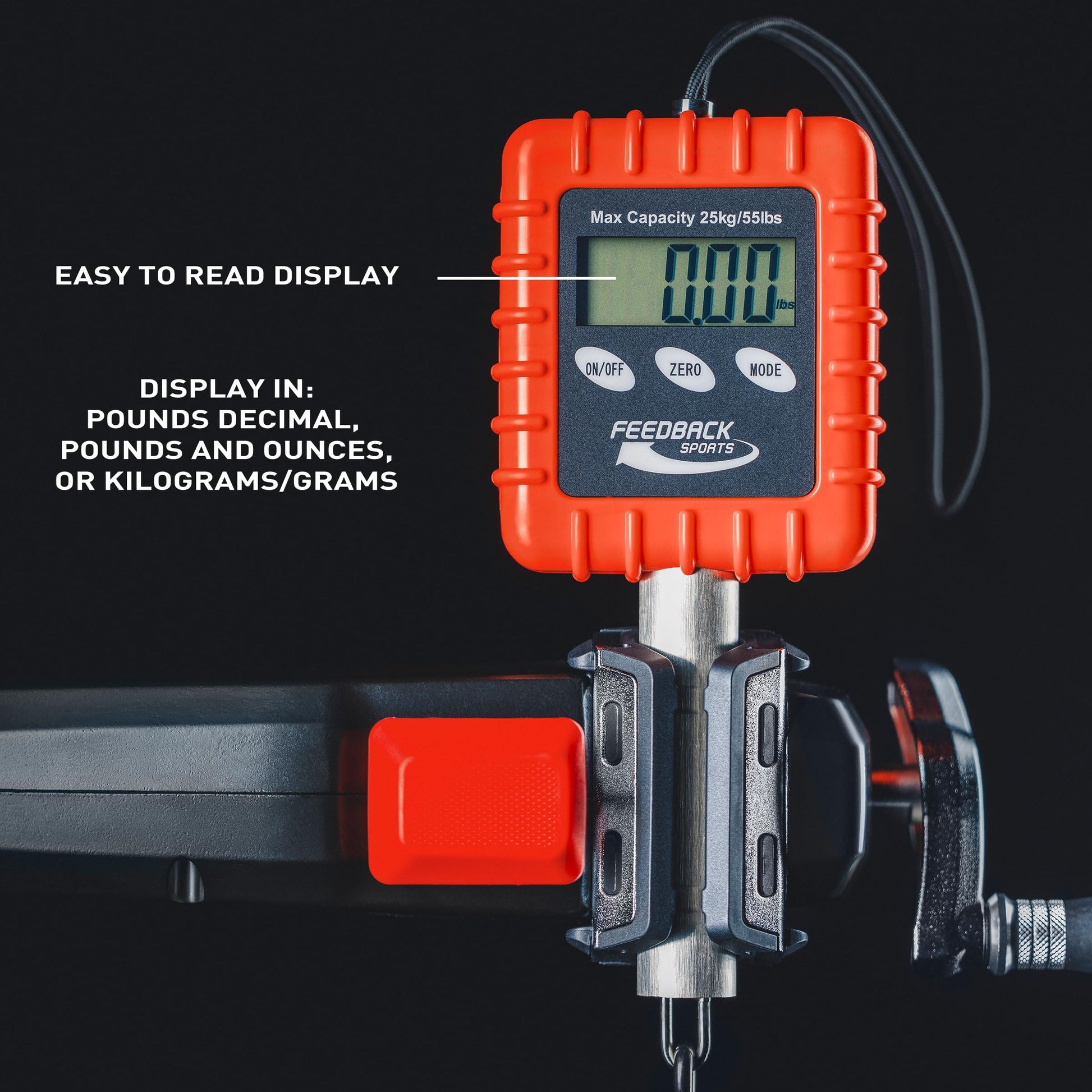 Feedback Sports | Alpine Digital Hanging Scale | for Bicycle, Backpacking, Gear, Luggage | Pounds, Ounces, Grams, Kilograms | 55lbs Capacity