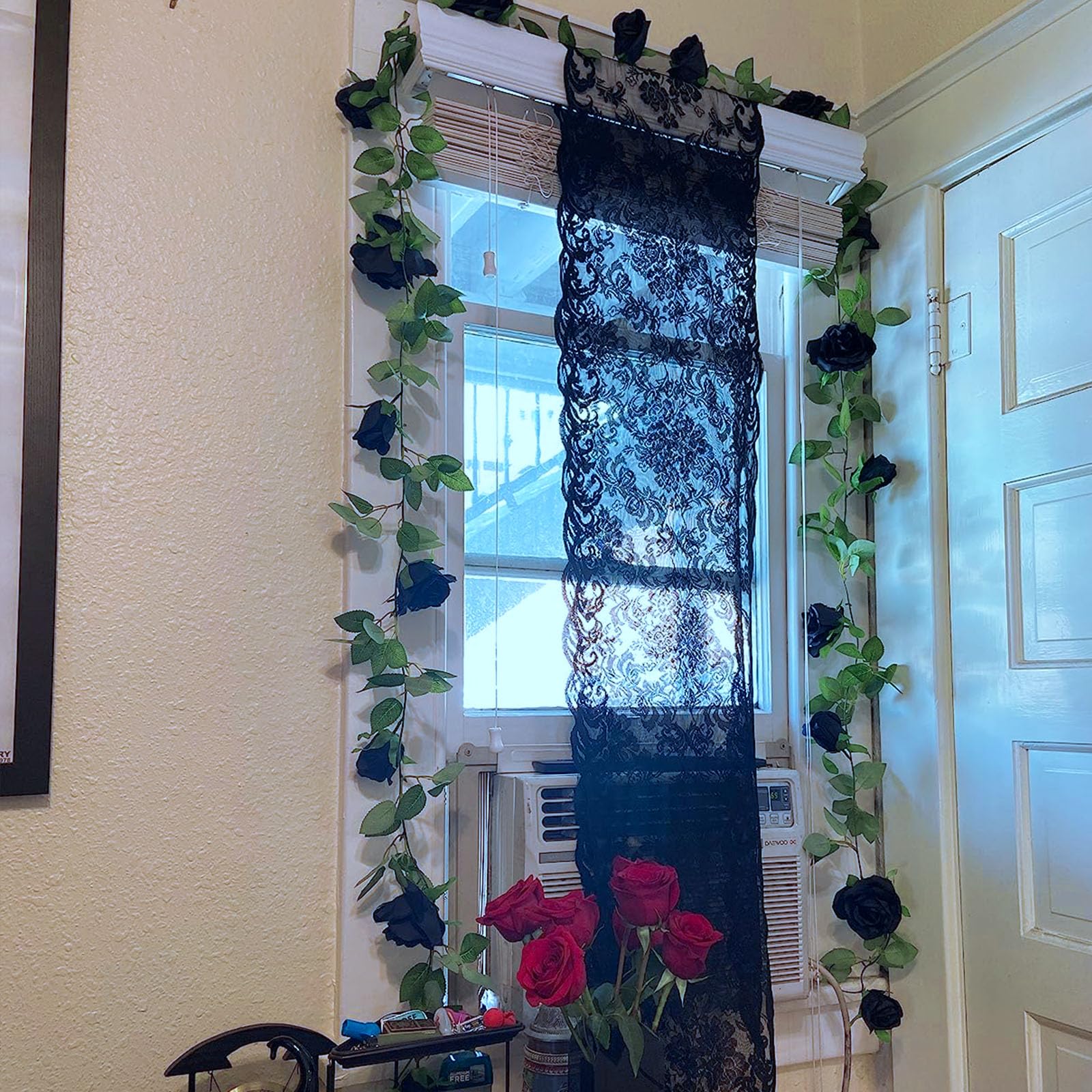 Felice Arts 2 Pack Black Artificial Flower Garland Each 6.5FT Fake Rose Vine Hanging Rose Garland for Halloween Wedding Flowers Table Centerpiece Arrangement Mirror Decor