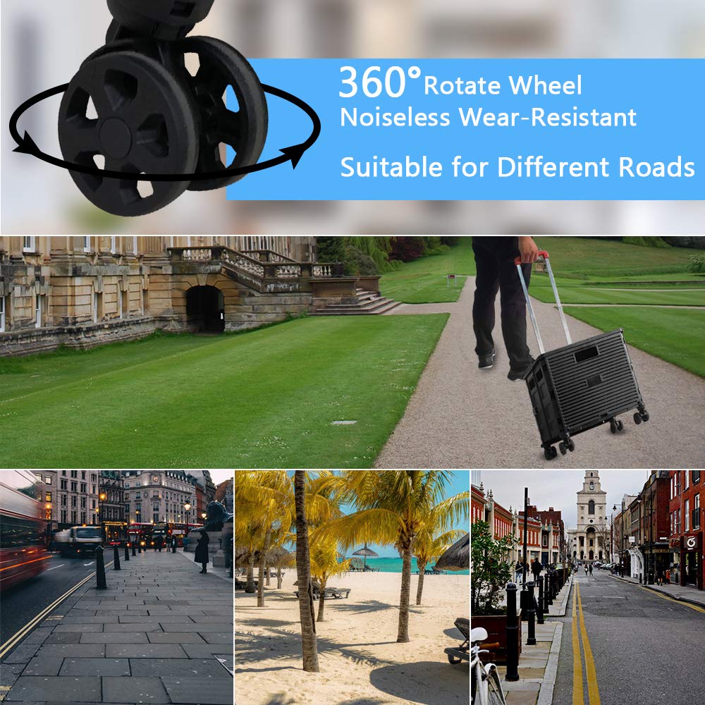 • 【Foldable Design, Easy to Store】This compact rolling crate can be folded easily with dimension 17.32×15.75×3.35 inch, save more space, and light weight(8.16 lbs), easy to carry in your backpack or by hand for actual needs, and unfold the trolley whenever use, more convenient.