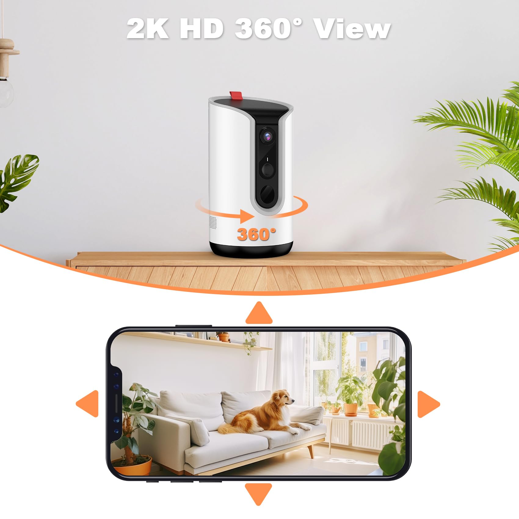 Fexfor 2K Pet Camera Security Dogs Camera, On-Device AI Tracking and Pet Monitoring, 360° View, with Treat Dispenser, Local Storage, 2-Way Audio, Phone App, Motion Alert