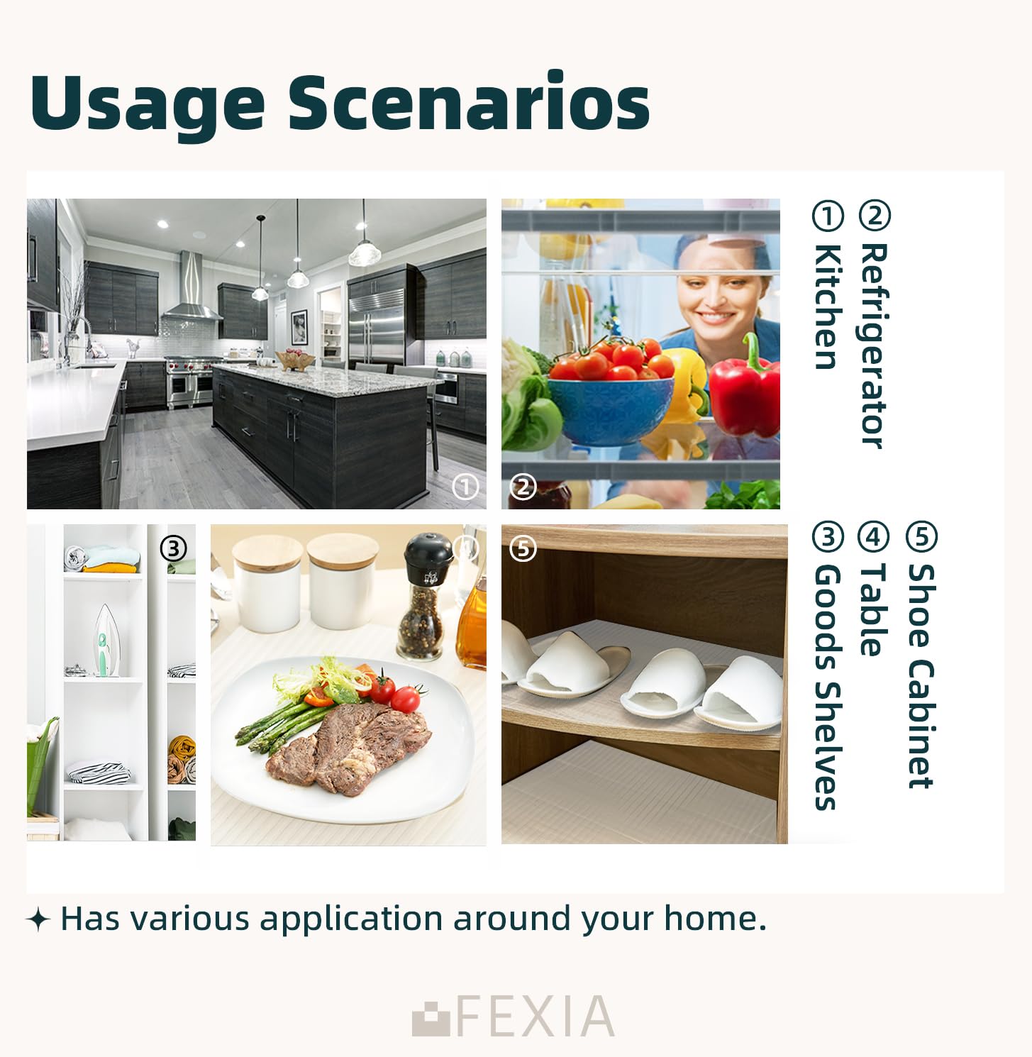 • [DURABLE AND SAFE MATERIAL]: The cabinet mat is made of premium quality EVA-based material that is extra durable, safe to use. Could be contact with vegetable and fruit directly. Eco-friendly necessities for home and kitchen. They won't rip or tear when stored with sharp utensils or heavy objects