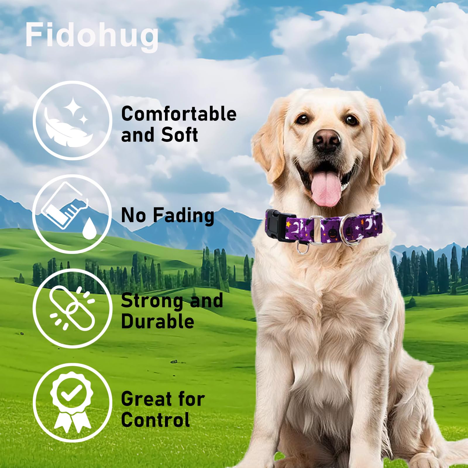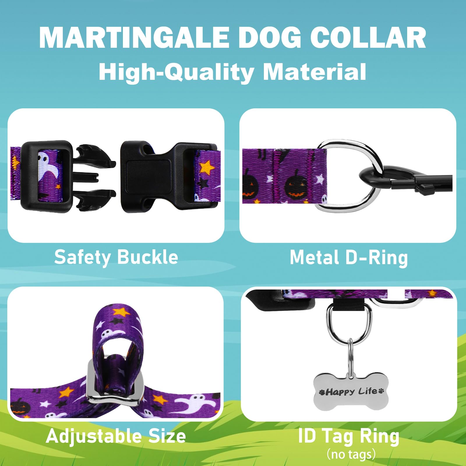 Fidohug Halloween Martingale Collar for Dogs with Buckle Adjustable Holiday Dog Collars (Purple Ghost, Medium)