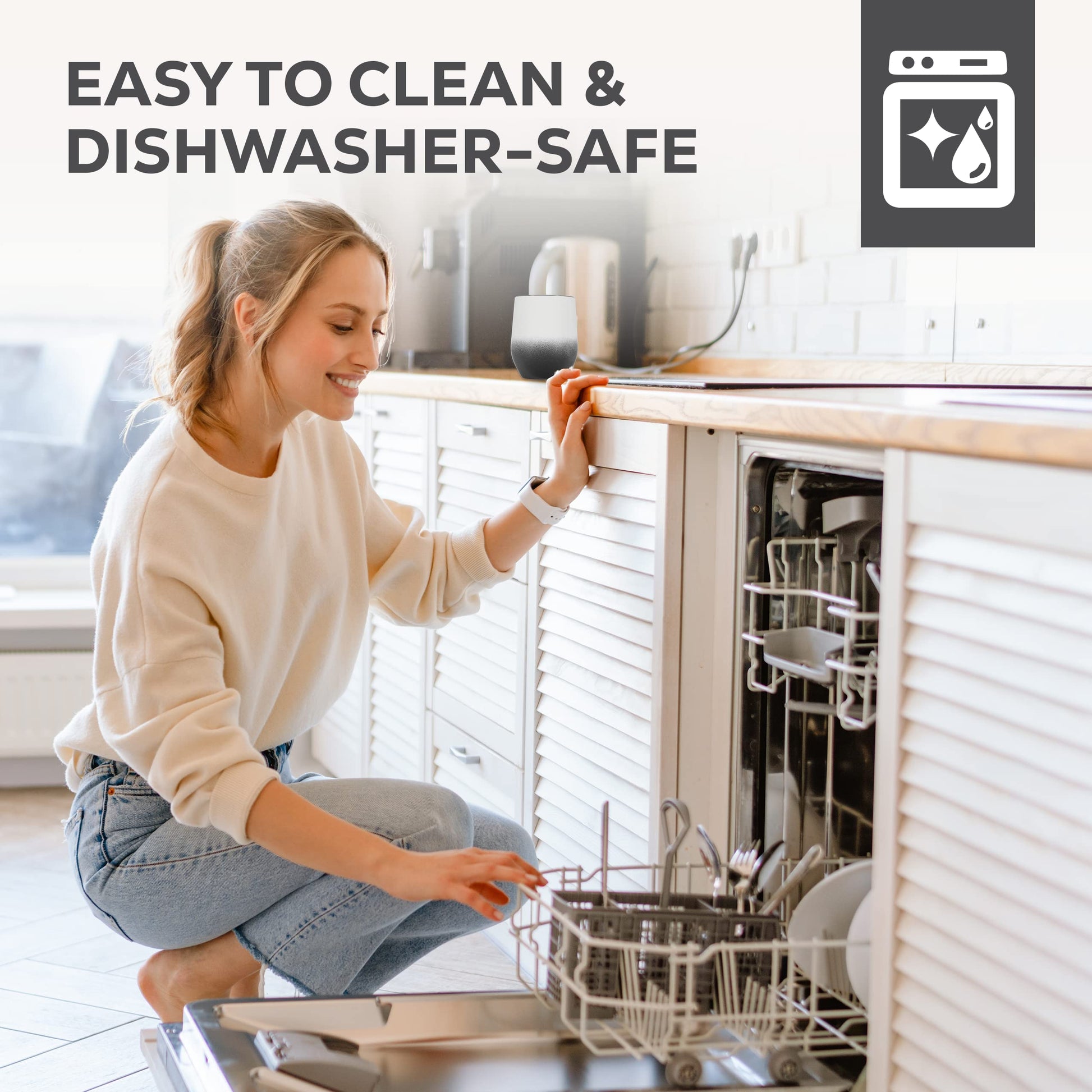 • ERGONOMIC GRIP - Specially designed for a graceful grip and comfortable lift. Lightweight with a smooth exterior, the wine glasses make for an incredible drinking experience. Not dishwasher safe.