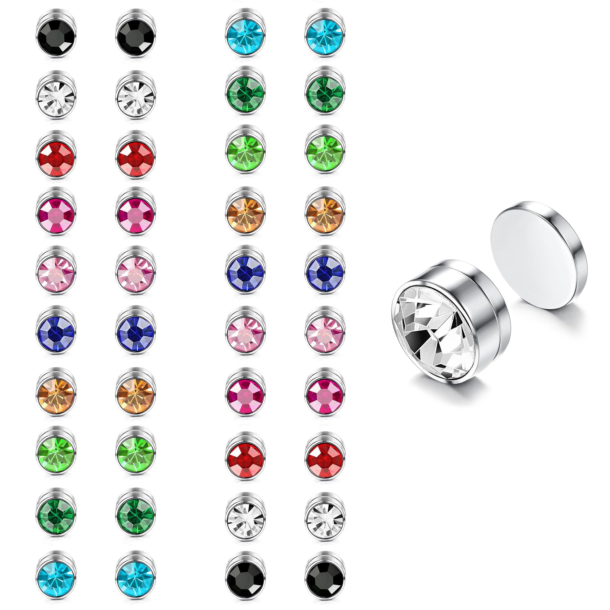 Finrezio 20 Pairs of 6 mm Magnetic Stud Earrings for Women Magnetic Earrings Colourful Crystal Non-Pierced Earrings Without Pierced Earrings, Crystal, 0