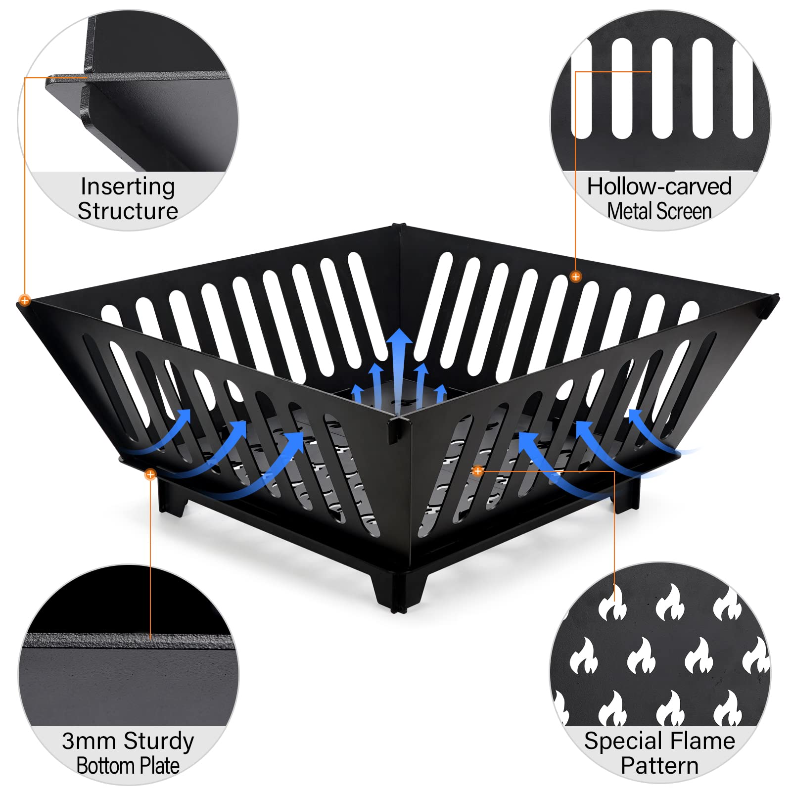 • Safe & Secure Material: The outdoor fire pit crafted from heavy-duty iron with black coating. And the thickness of side plate and bottom plate is 2.3mm and 3mm, keep lightweigh and durable and resists high-temperatures.