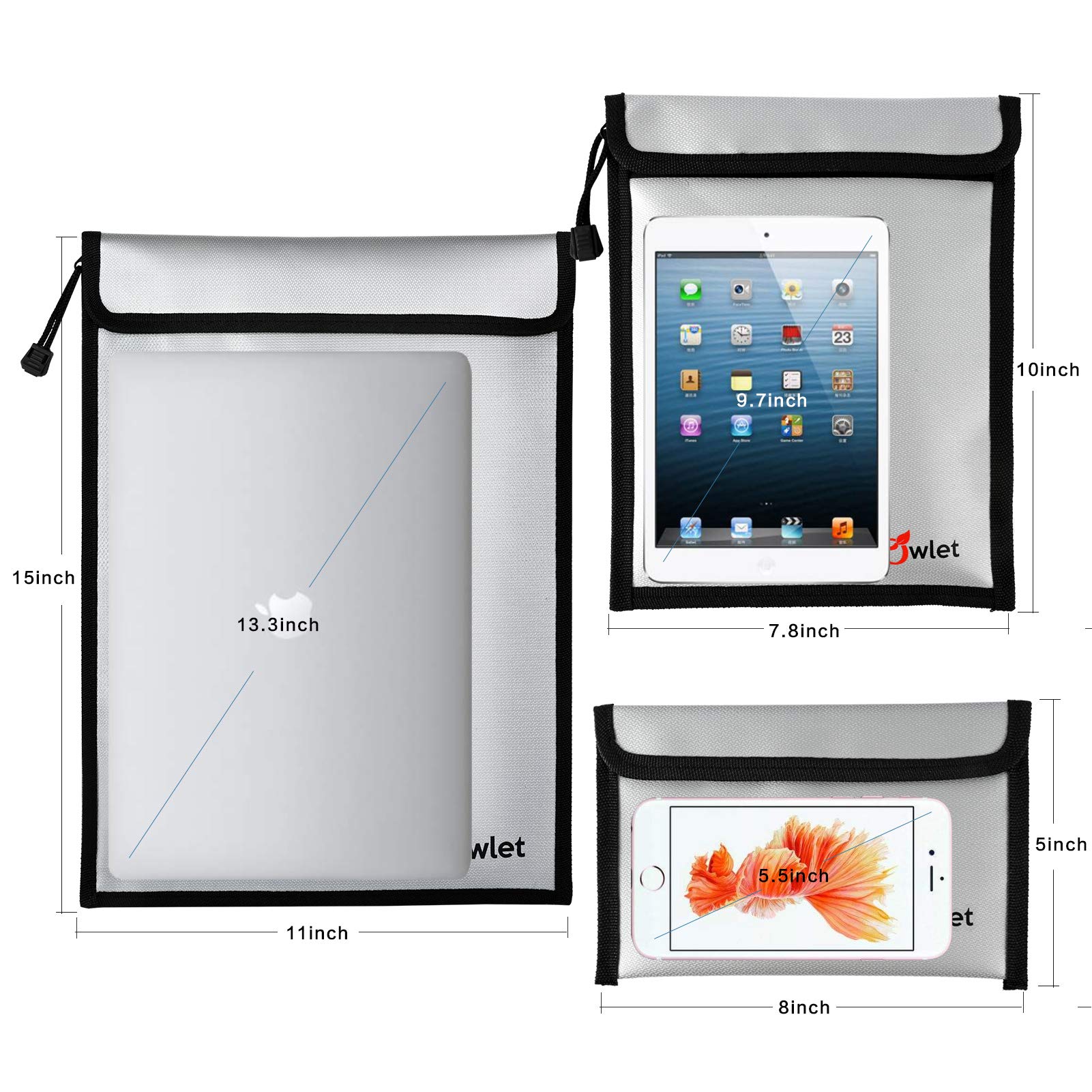 • 3 DIFFERENT SIZE FOR DIVERSE DEMAND: The set includes 15 x 11 inches fireproof document bag, 10 x 7.8 inches fire proof envelope bag and 8 x 5 inches small fire proof wallet bag . Large capacity & widely used, they can store all valuables include bank deposit,legal documents,cash,coin,credit cards,letters,precious photos,marriage certificate,passport and so on.