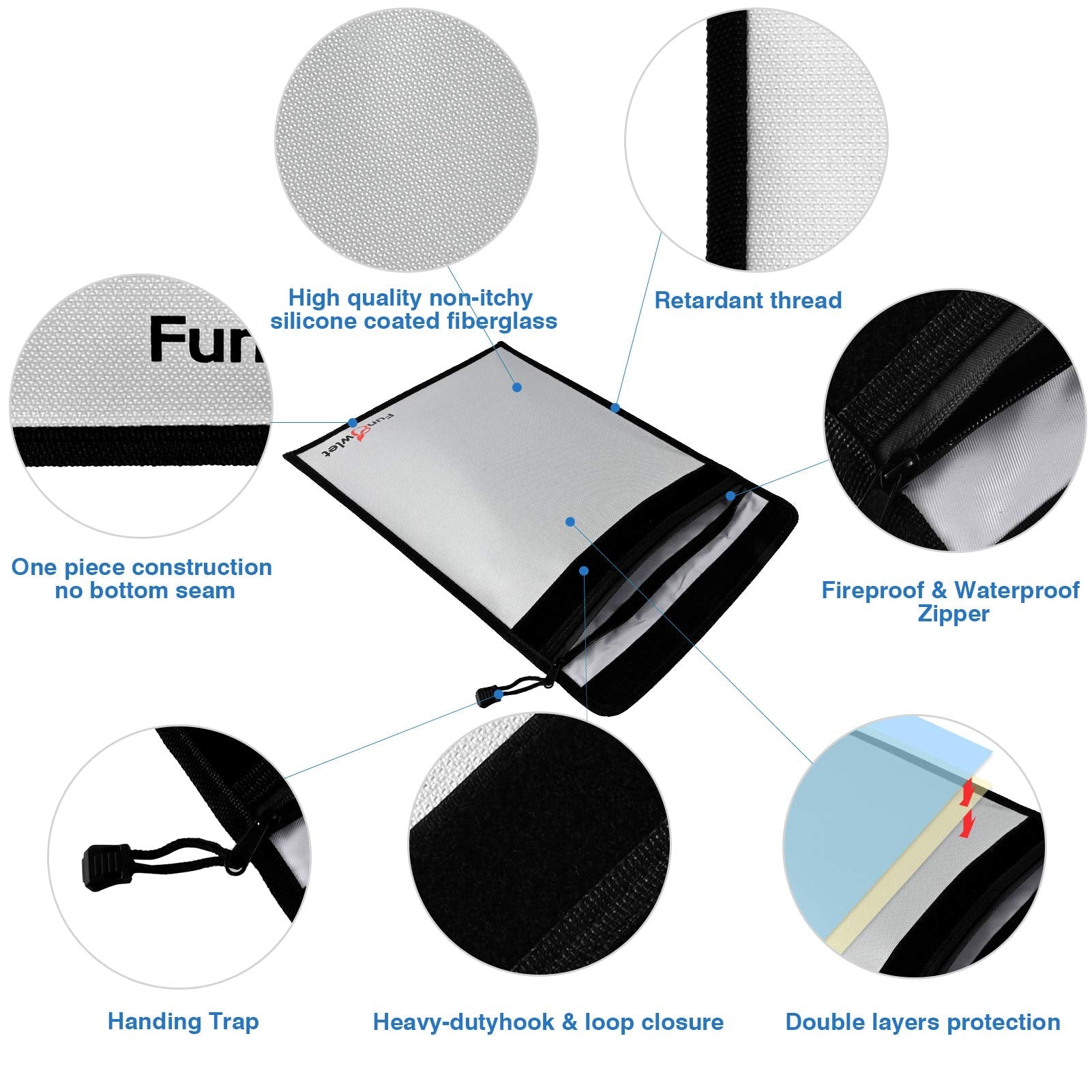 • FIRE & WATER RESISTANT: Fireproof document pouches are made of high quality non-itchy silicone coated fiberglass which stands up the temperature up to 4200℉. It will protect your documents and valuables from the damage in case of fire. Fireproof bag for money is not only fire resistant but also high water resistant in case it gets wet for any reason. It is suitable for indoors/outdoors.