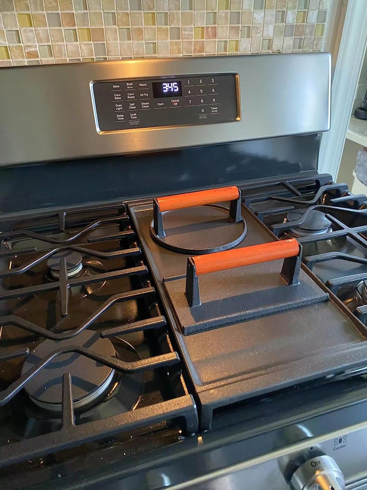 • 【Commercial Grade Accessories for Griddle】 Cast iron flat grill press, they’re used by real griddle masters. HOMENOTE offers you professional chef-level flat top grill accessories for Blackstone so you can make your own restaurant-like cuisine at home.