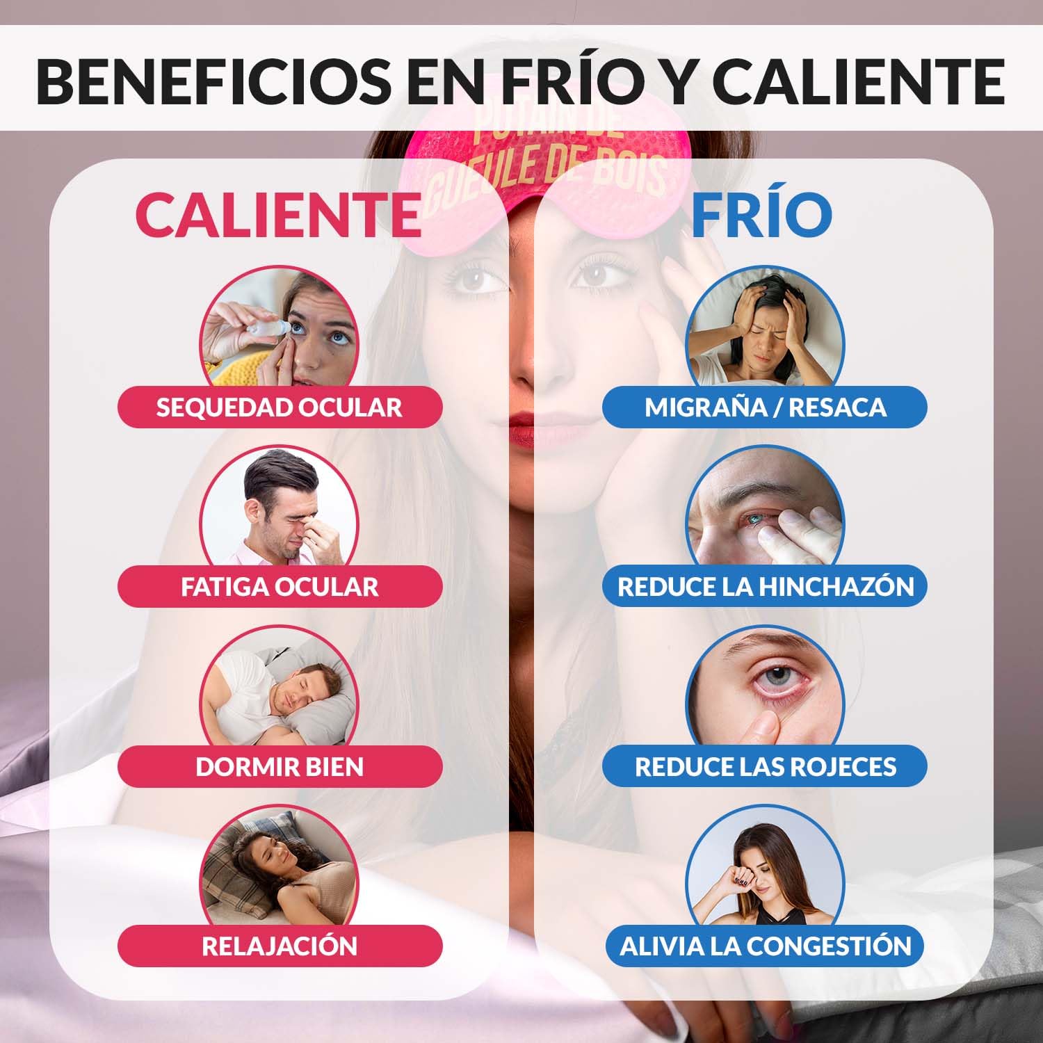 • EYE PROTECTION FOR RECOVERY This soothing eye mask has the gel in small beads so it fits perfectly over the eyes, providing a better sense of relaxation and comfort. In addition, it has an adjustable strap to adjust to you and make it even more comfortable.