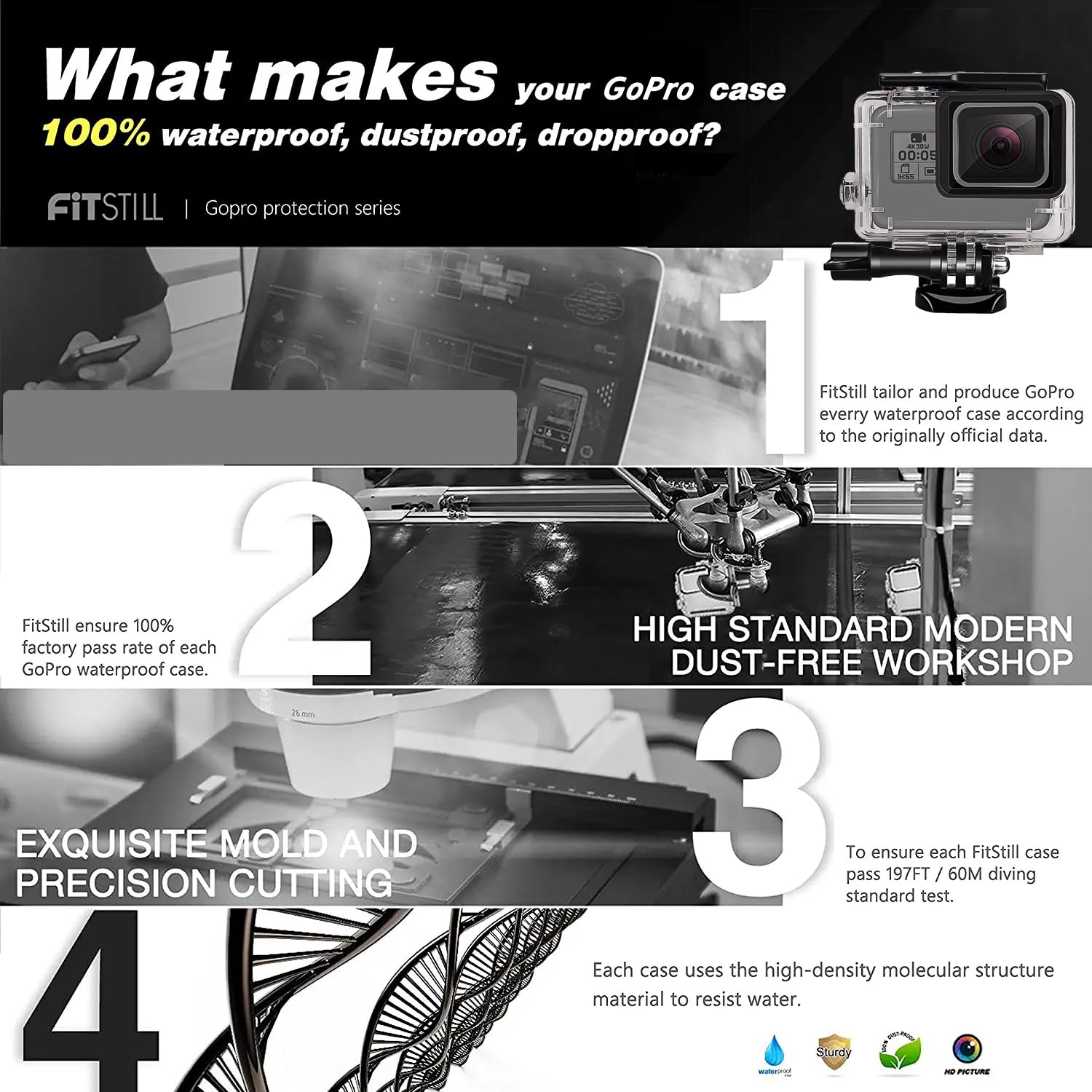FitStill 148FT/45M Waterproof Housing for Go Pro Hero 2018/7/6/5 Black,Protective Underwater Dive Case Shell with Bracket for Go Pro Hero7 Hero6 Hero5 Black Action Camera Accessories