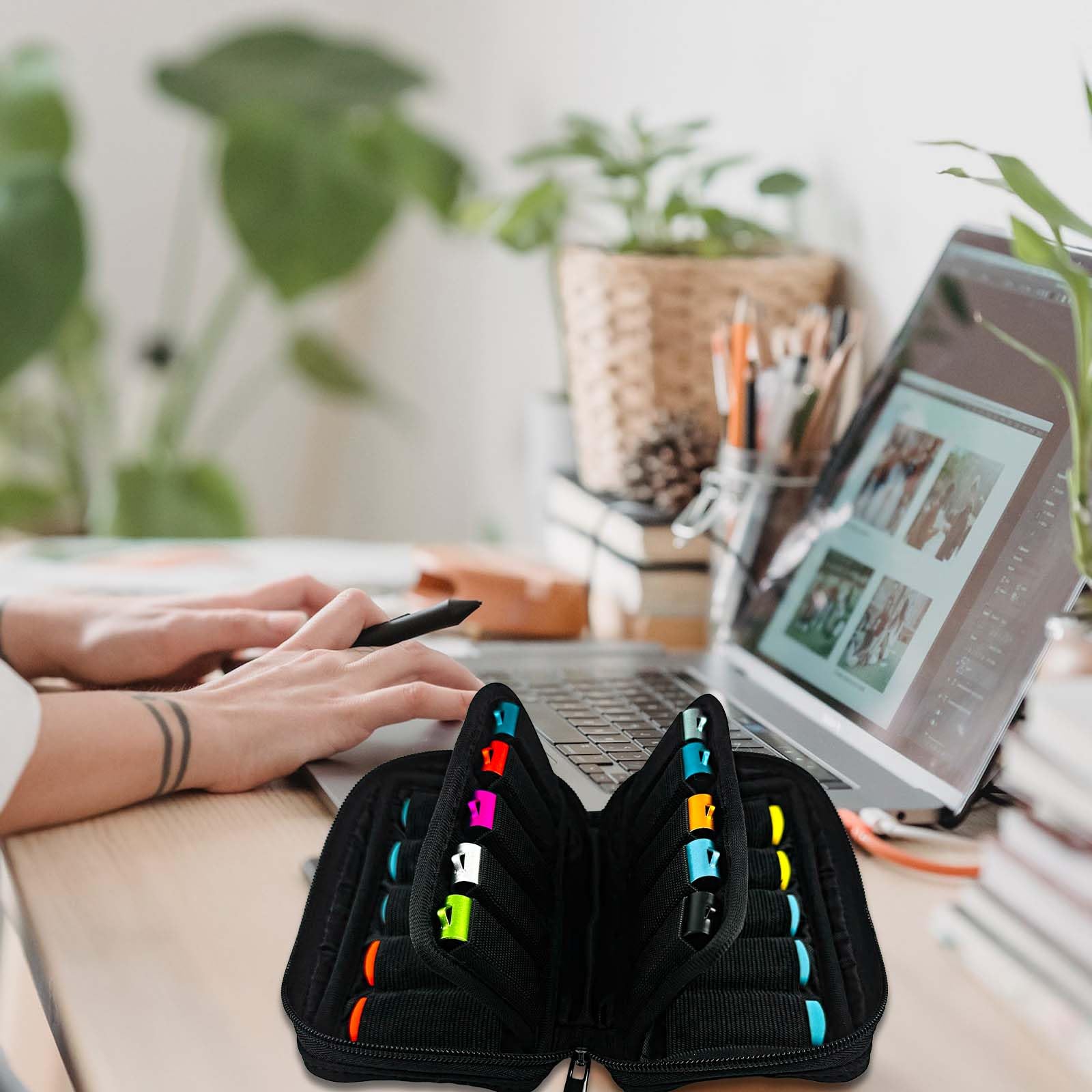 • If you have a pile of flash drives, each time you need one you have to take a lot of time to find where they are and which one if for what, then you need one flash drive organizer case. With 20 slots, this usb bag helps you to keep the desktop clean and work more effecient. The usb case comes with label sheet, which you can use to identify each one of your memory stick.