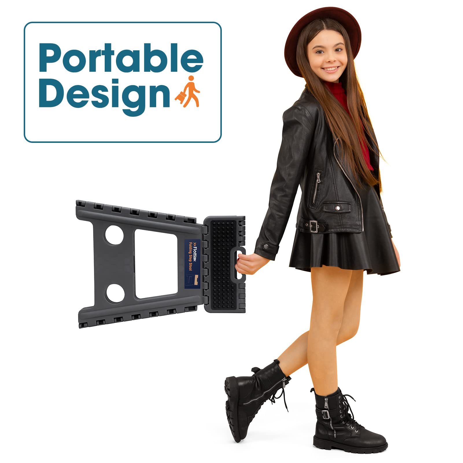 Flottian 16" Folding Step Stool for Adults and Kids Holds Up to 300 lbs,Non-Slip Folding Stools with Handle, Compact Plastic Foldable Step Stool for Bathroom,Bedroom, Kitchen, Gray,1PC