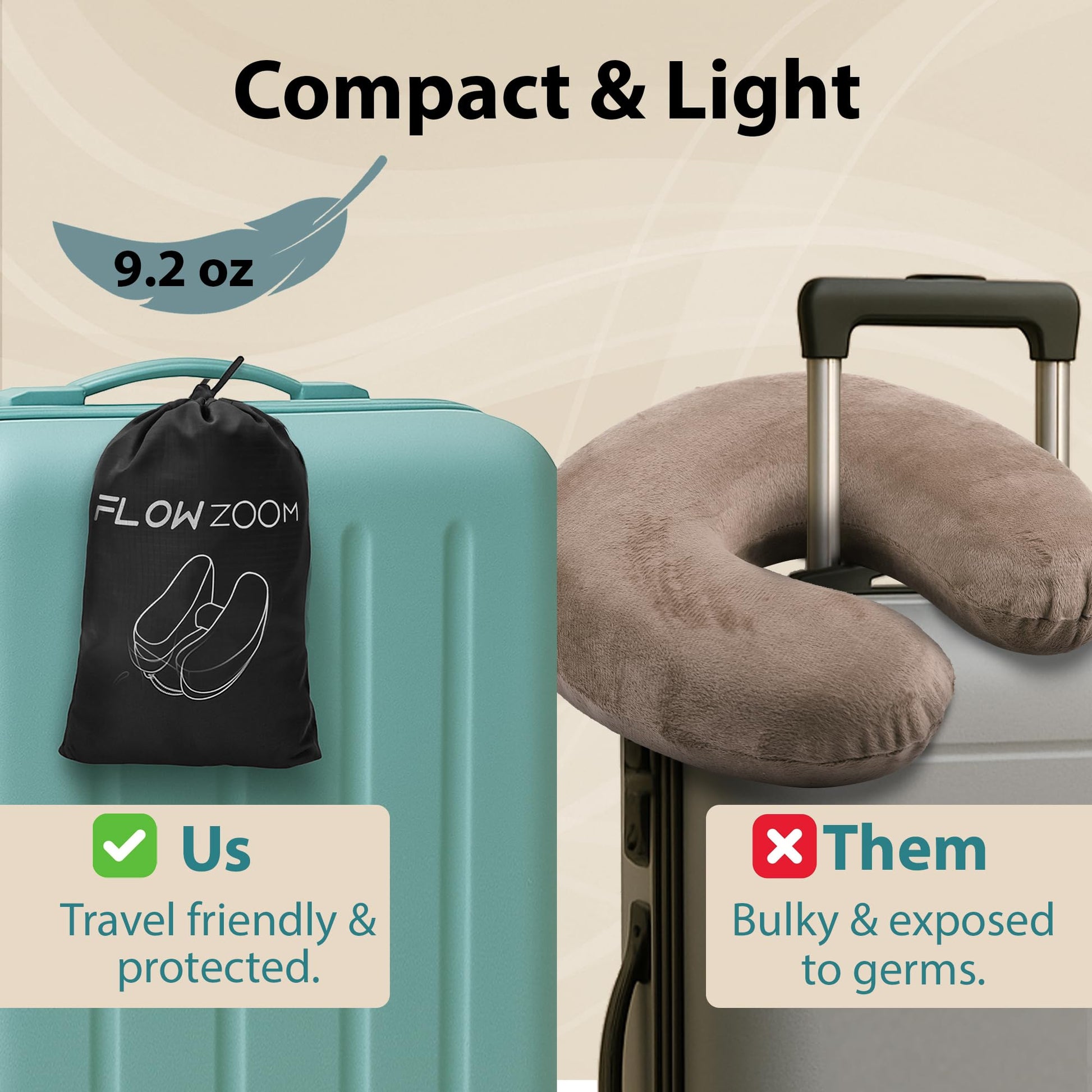 • Fast Inflation and Endurance: Inflates and deflates in seconds - no pump needed. Solid materials and a secure leak-proof valve ensure your lasting comfort; our travel neck pillow is only 8.5 oz and packs small
