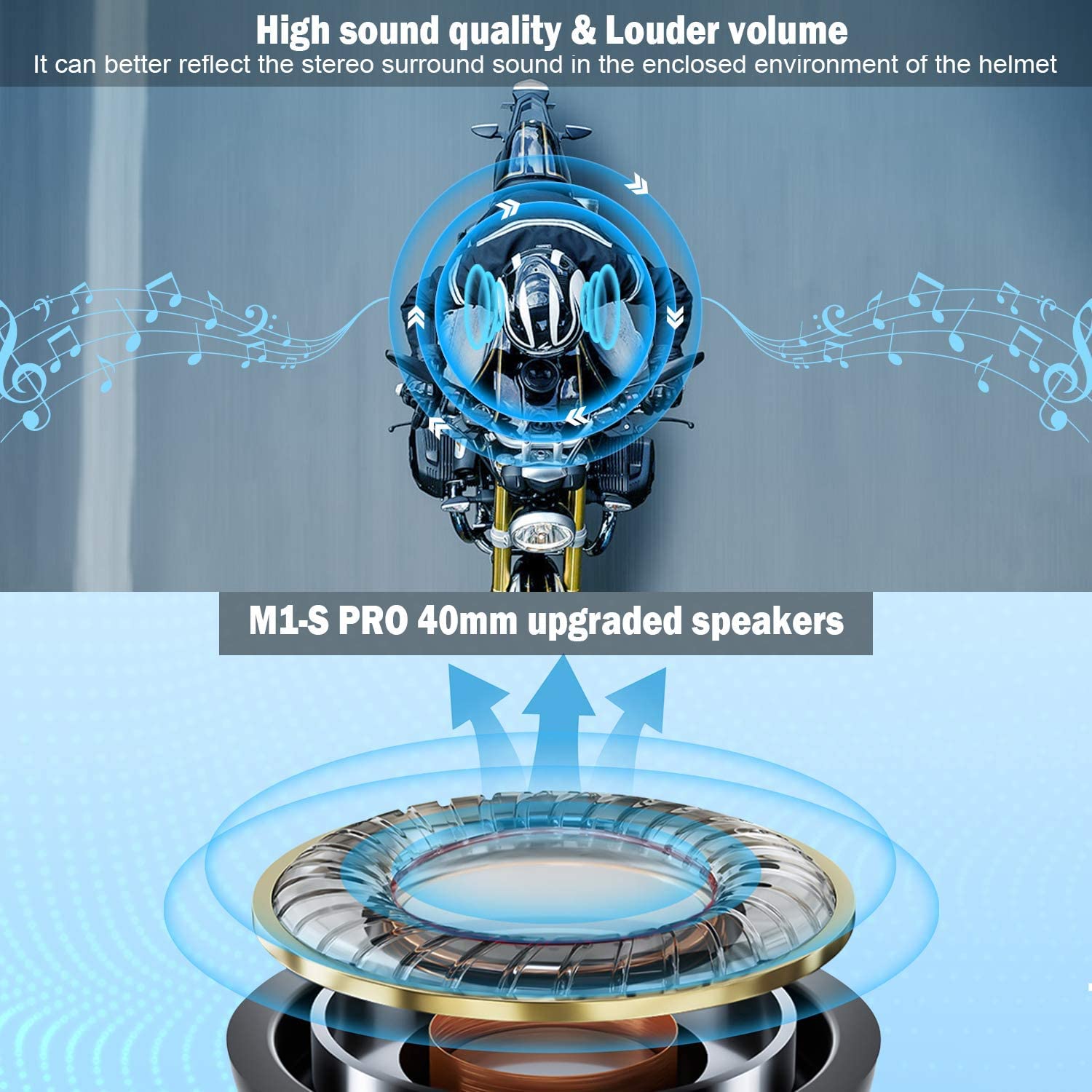 • 【2000M Maximum Distance & Music Sharing】M1-S Pro is equipped with Bluetooth 5.0 version, It has high compatibility and stability. If there are no obstacles such as buildings in a straight line, the motorcycle helmet intercom maximum communication distance of the group is about 2000 meters, all riders can speak with clear sound quality. It also featured music sharing that allows two riders enjoy the same song during their trip. Method: turn on 2 units and pair them successfully, pause the music first, then press and hold the volume button '-' and the function button(the largest button) on one of the units at the same time for 3 seconds until you hear the beep: start sharing music.