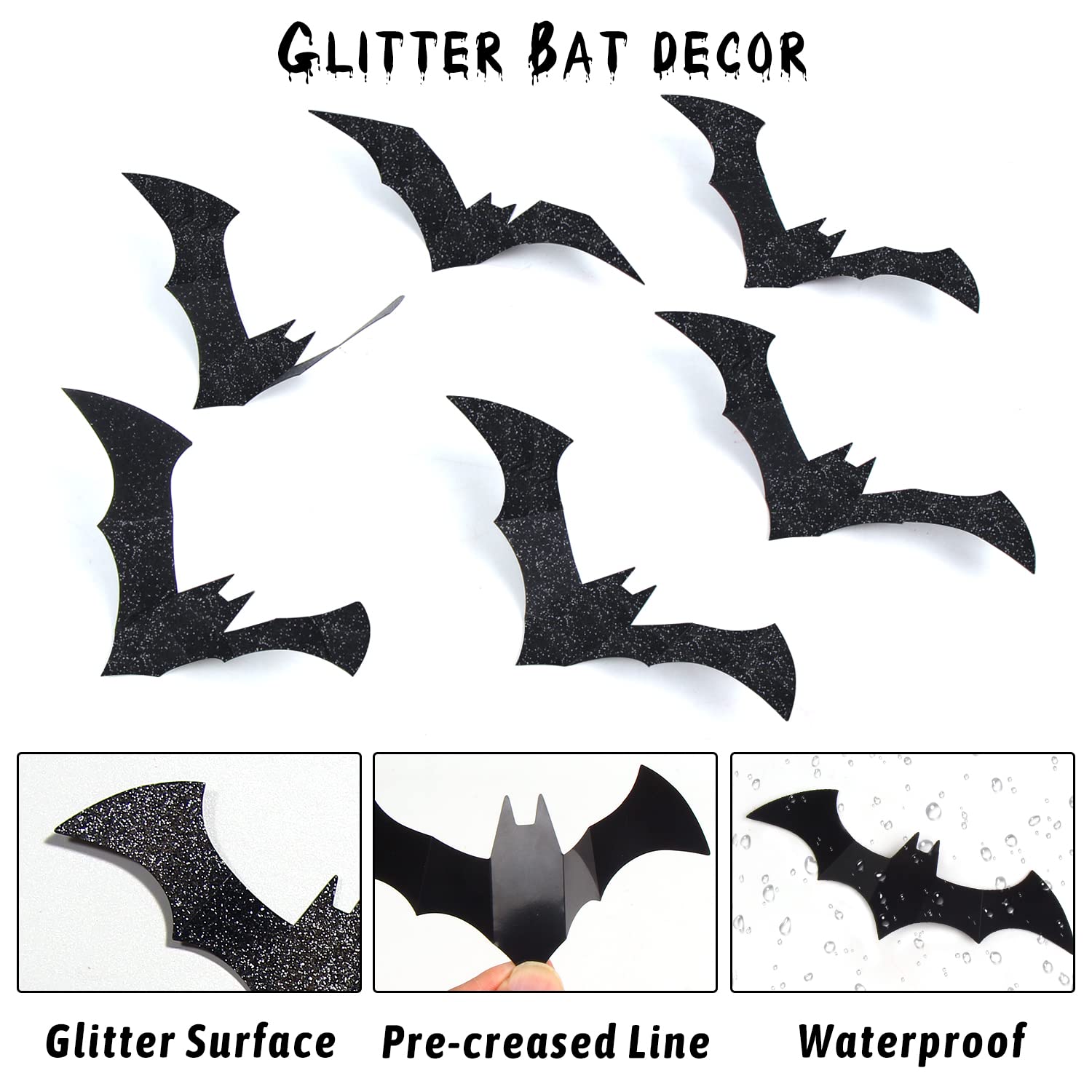 • Glitter Bat Decor:The Halloween bat wall decor feature glittery surface,shiny addition to your Hallowen wall decoration.The glittery bats sticker will make your home stand out in Halloween!