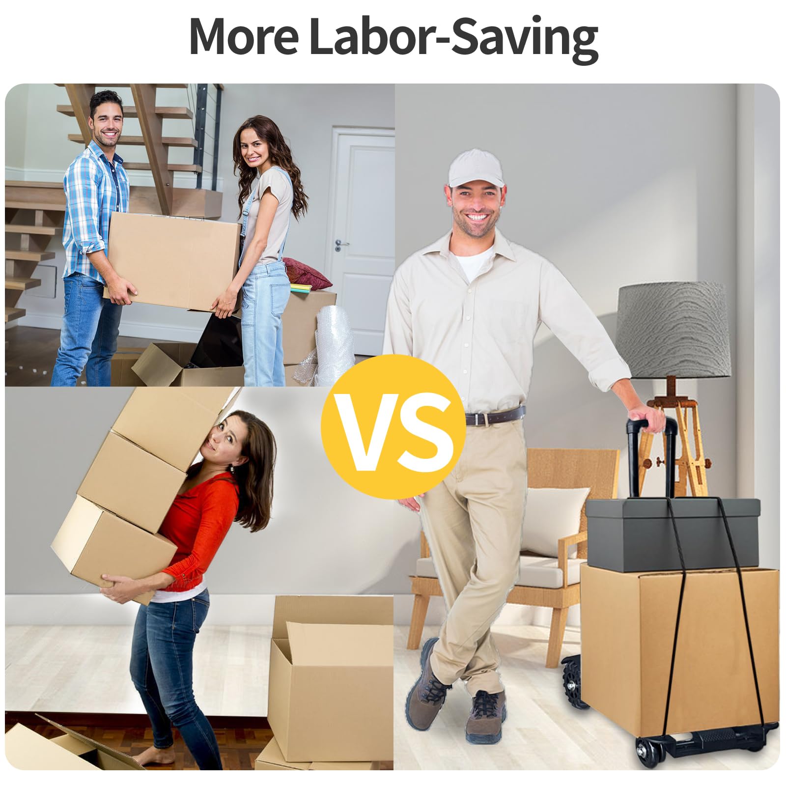 • 【MULTIFUNTIONAL & WIDELY USE】: Unique folding design, two gears adjusting, perfect for shopping, travel, luggage moving, outdoor carry, moving house, cargo handling, warehouse delivery, home, school, office daily use, etc. Let our rugged dolly cart do the heavy lifting!