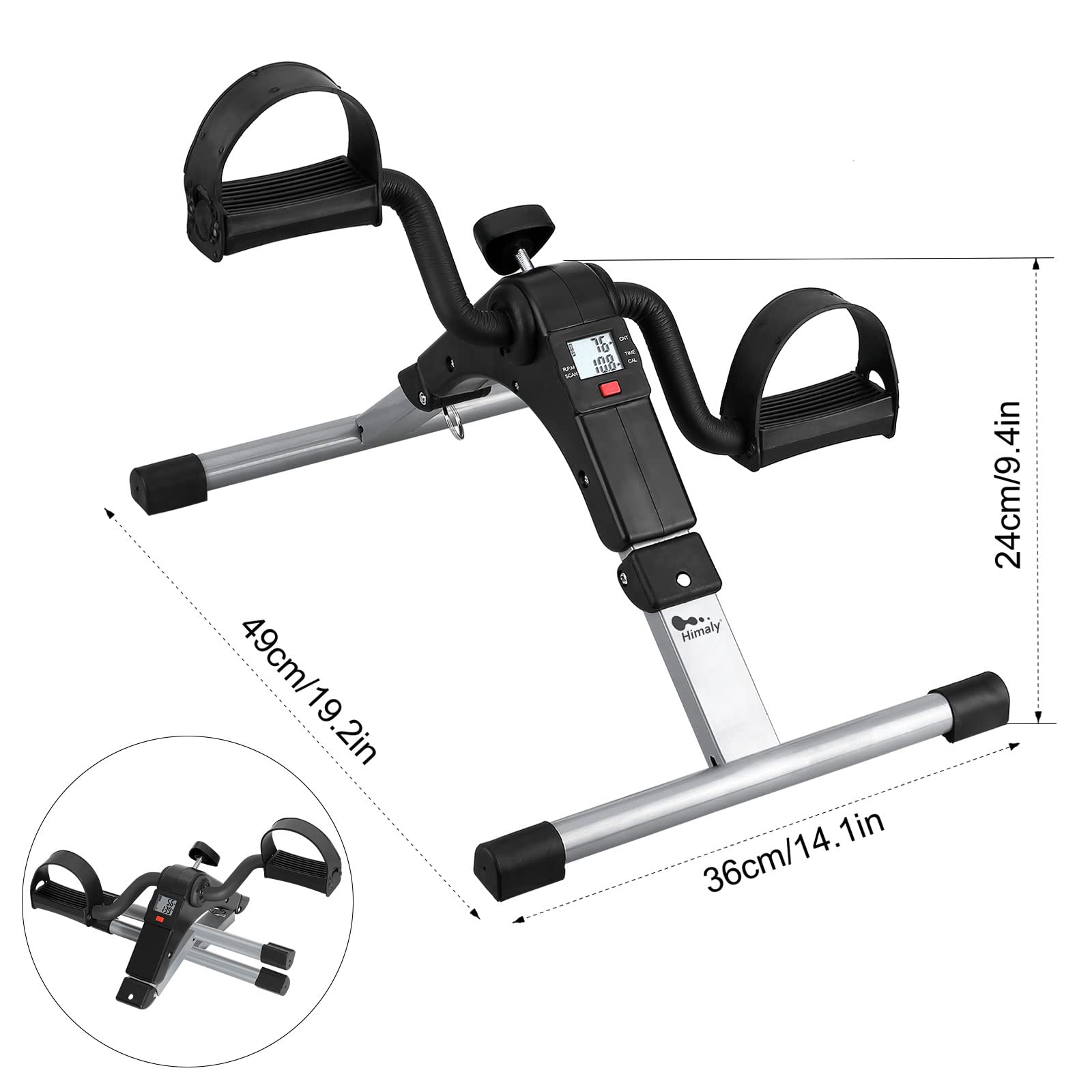 Folding Pedal Exerciser , himaly Mini Exercise Bike Under Desk Bike Pedal Exerciser with LCD Display for Arms and Legs Workout, Portable Desk Bike Peddler Machine