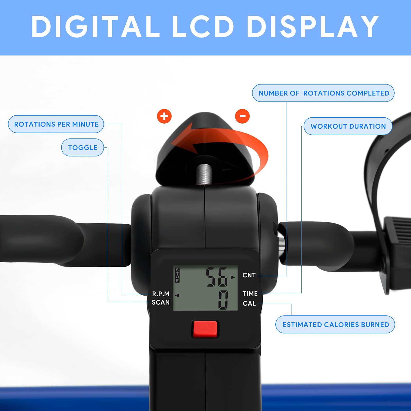 Folding Pedal Exerciser Mini Exercise Bike Portable Foot Peddler Desk Bike Arm and Leg Peddler Machine with LCD Monitor(Blue)