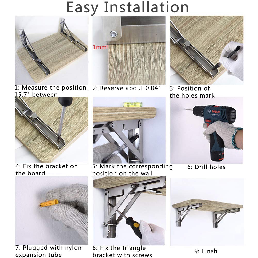 • Material: The folding shelf brackets are made of premium polished 304 Stainless Steel. Surface brushed treatment, build to resist daily scratches, corrosion and tarnishing