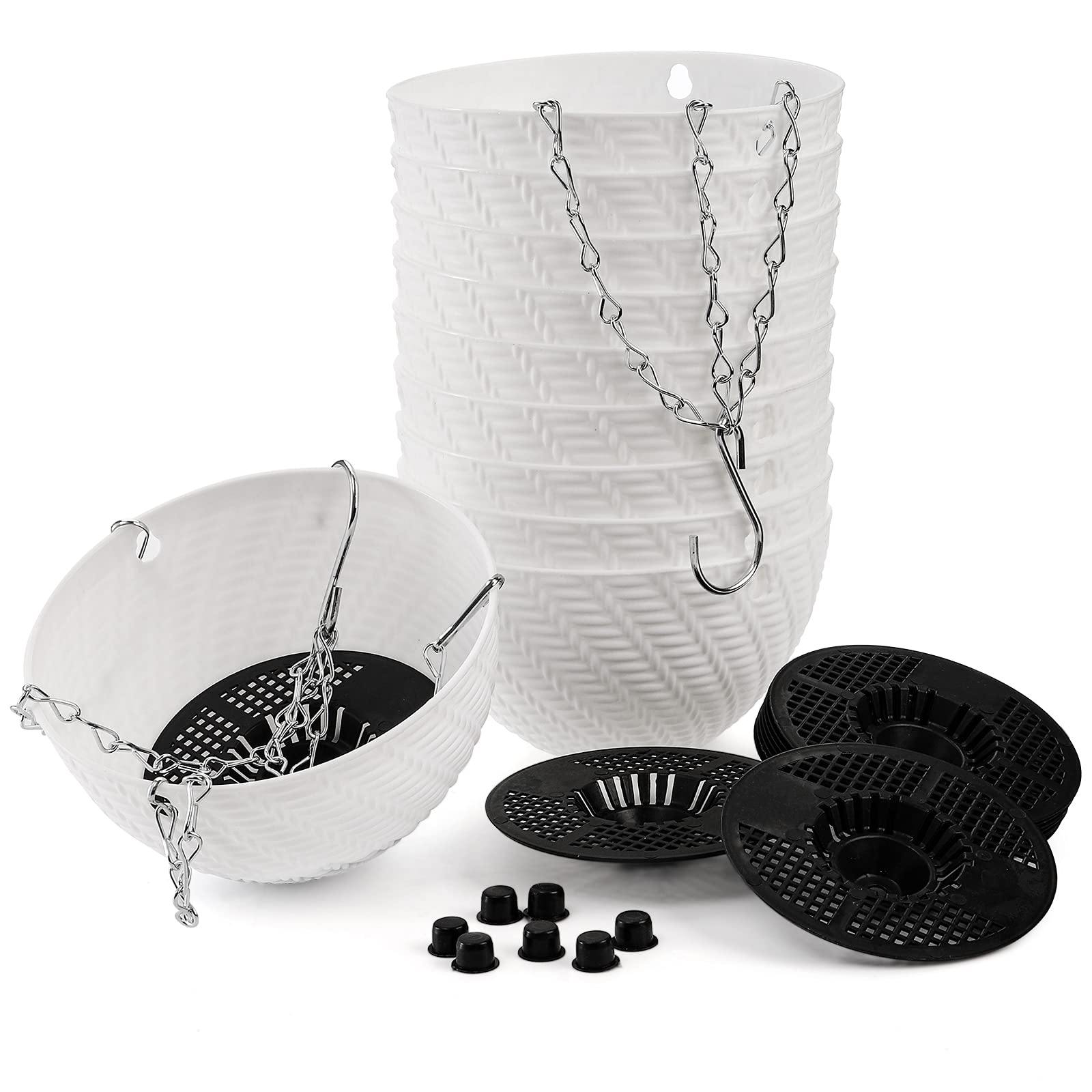 • Value 10 Pack: Package includes 10 pieces 6 inch hanging planters with self-watering insert and metal hanging chains. Each comes with a drainage plug for switching between indoor or outdoor use. An excellent choice for your lovely flowers and plants