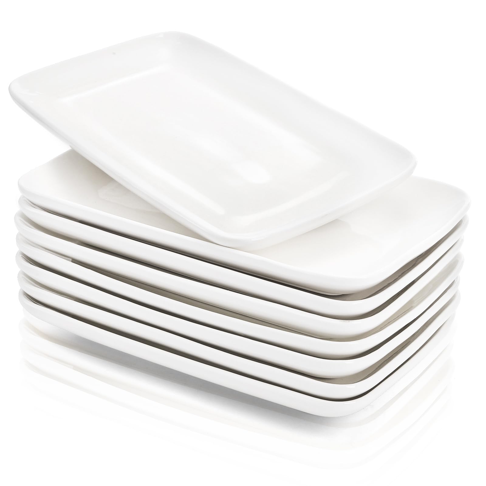 Foraineam 8 Pieces Rectangular Plates 8 Inch Porcelain Platters, Dessert, Appetizer, Salad Plates White Serving Trays