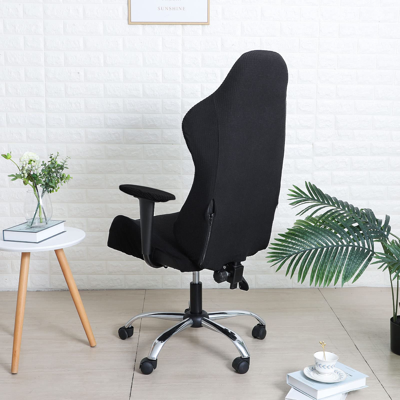 • ☑ [Elastic fabric for easy application]: the gaming chair covers offer an impressive stretch property allowing them to fit the chair well which can be removed and put back. Two sides Zipper design and chair seat cover bottom Ties design offers perfect fit and non-slip grip, 5 minute is enough to install chair cover. No matter what material your chair is, our chair cover will fit like a glove.