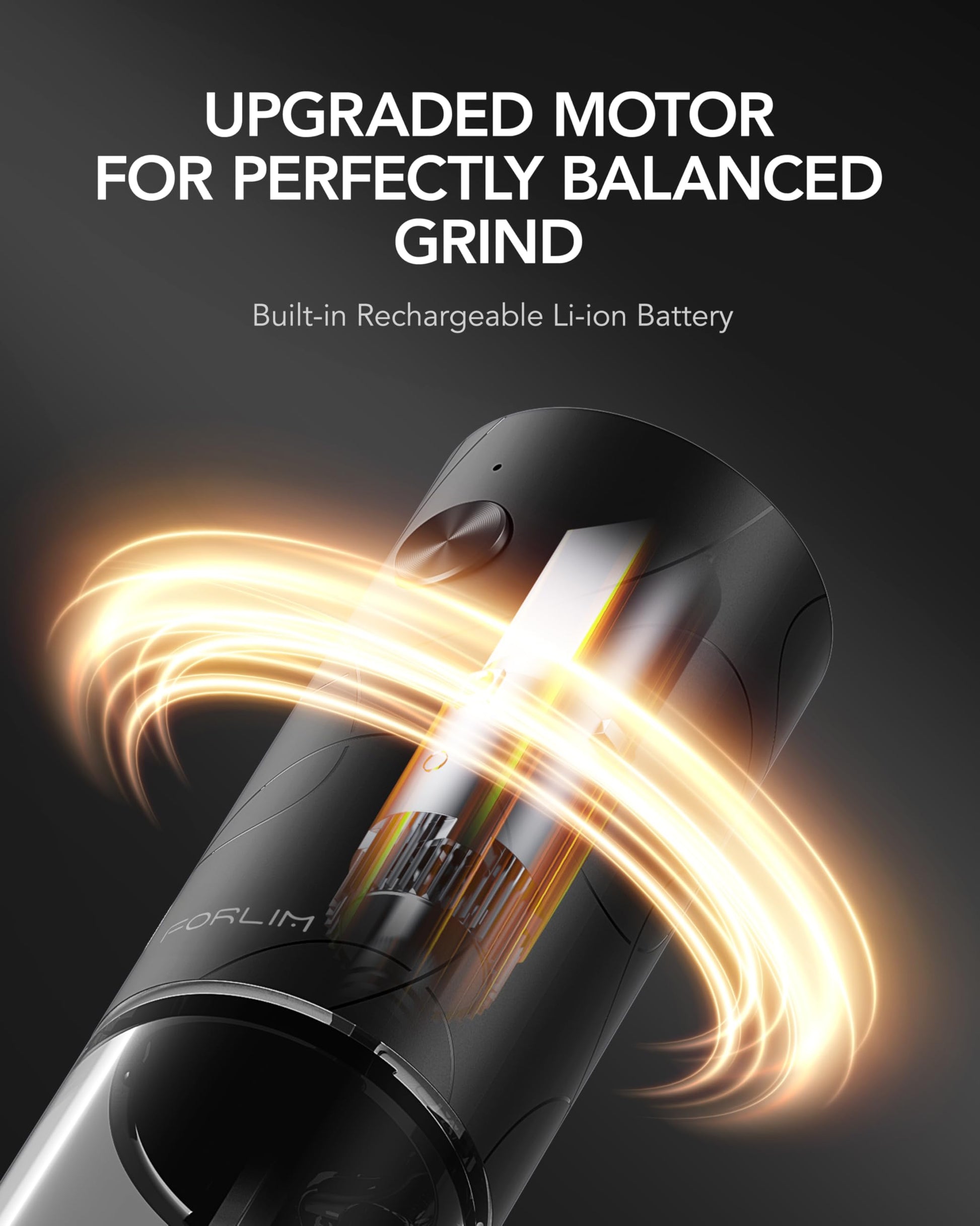 • Ultra-Low Noise: FORLIM salt and pepper grinder set operates at under 68 DB, ensuring a peaceful kitchen environment. Say goodbye to noisy grinding! With a high-quality motor and gearbox.