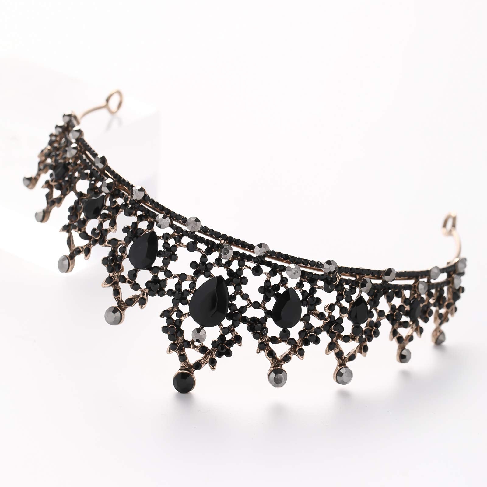 FORSEVEN Rhinestone Headband Birthday Party Tiaras Bridal Wedding Accessories (Black) Halloween Decorations Headband