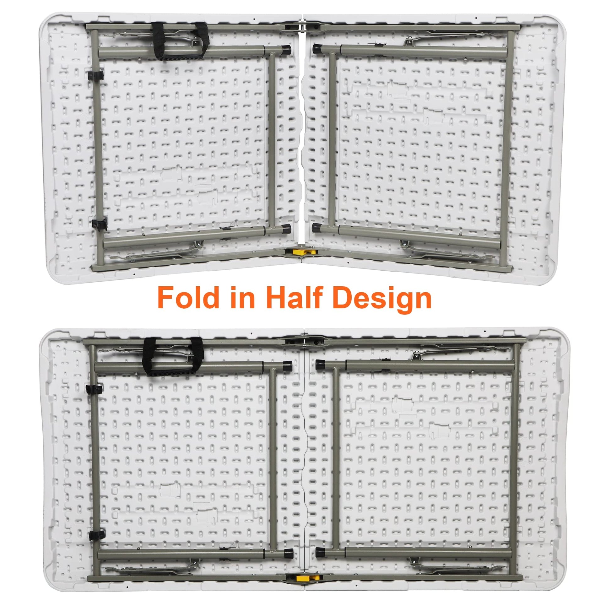 FORUP Folding Utility Table, 4ft Fold-in-Half Portable Plastic Picnic Party Dining Camp Table