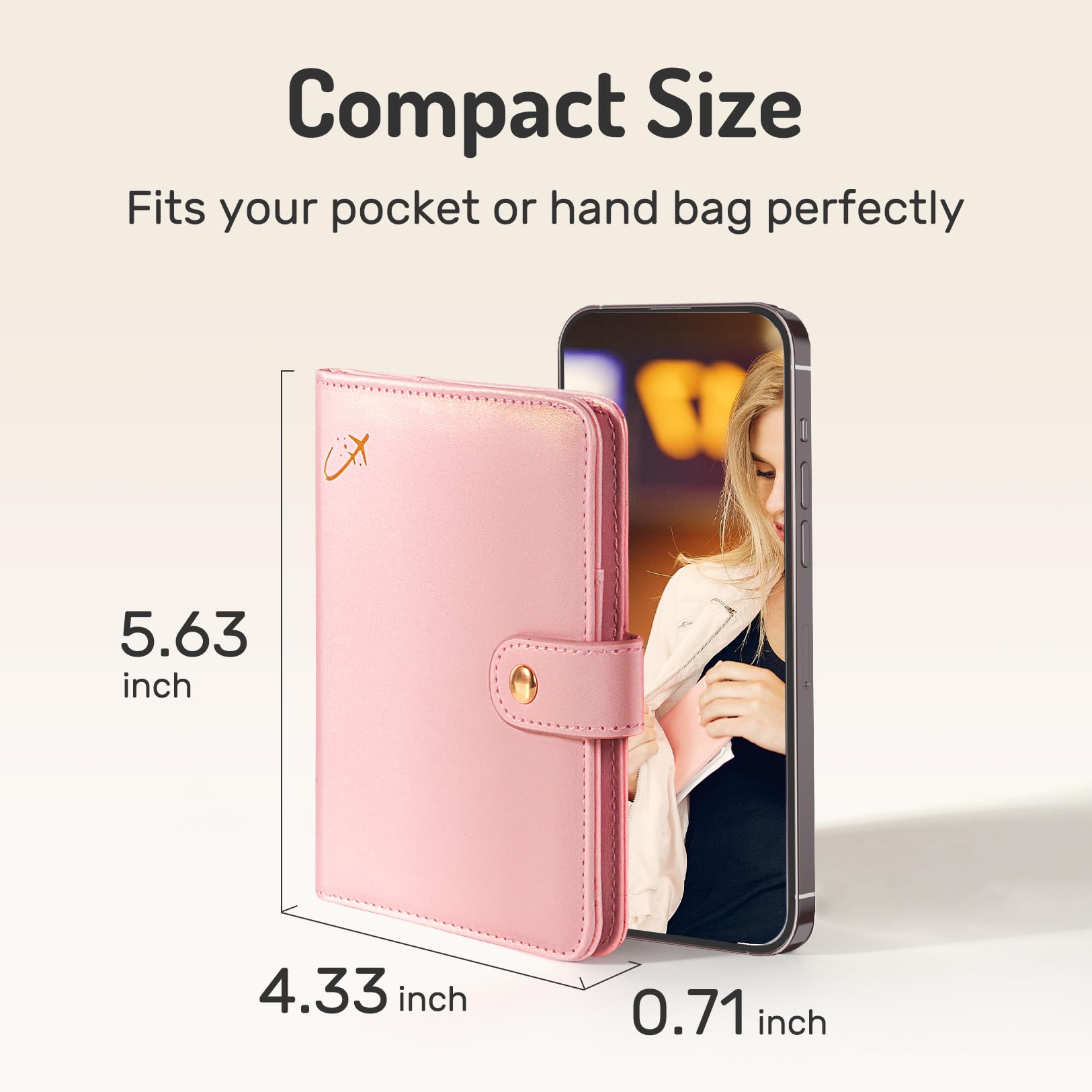 • Travel Must Have: This passport cover keeps all your travel essentials handy in one place, such as your passport, credit cards, cash, ID cards and even a pen for customs forms. Measuring 5.6' x 4.3' x 0.7', our passport wallet provides a hassle-free and convenient travel routine.
