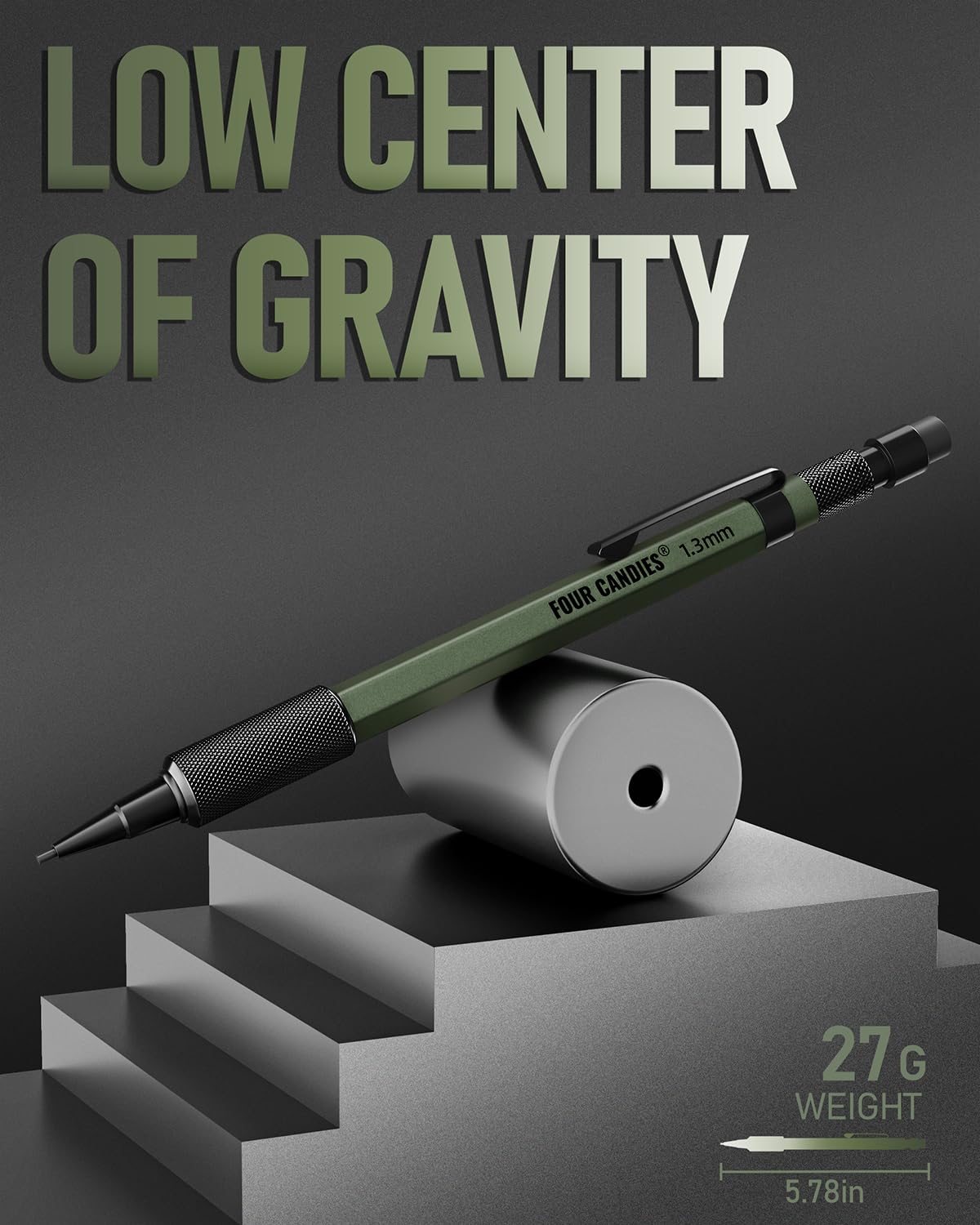 Four Candies 1.3mm Mechanical Pencil Set with 72 Lead Refills, 3PCS Metal Weatherproof Body Heavy Duty Carpenter Pencil, 3 Eraser, 16 Eraser Refills, for Outdoor Woodworking Drafting Marking with Case