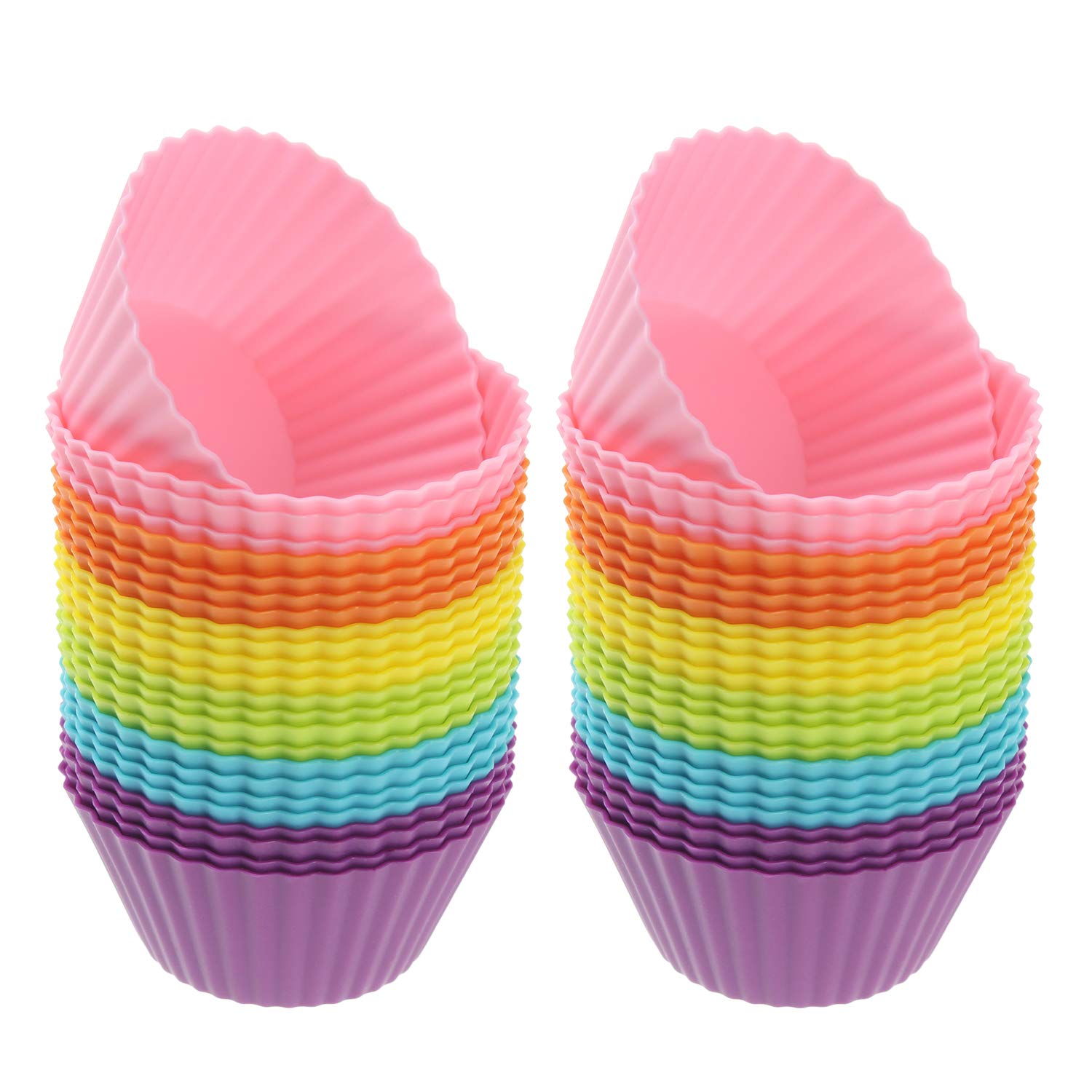 Freshware Cupcake Liners, Pack of 48 Silicone Muffin Cups, Reusable & Non-stick Cupcake Liners for Party Halloween Christmas, Round