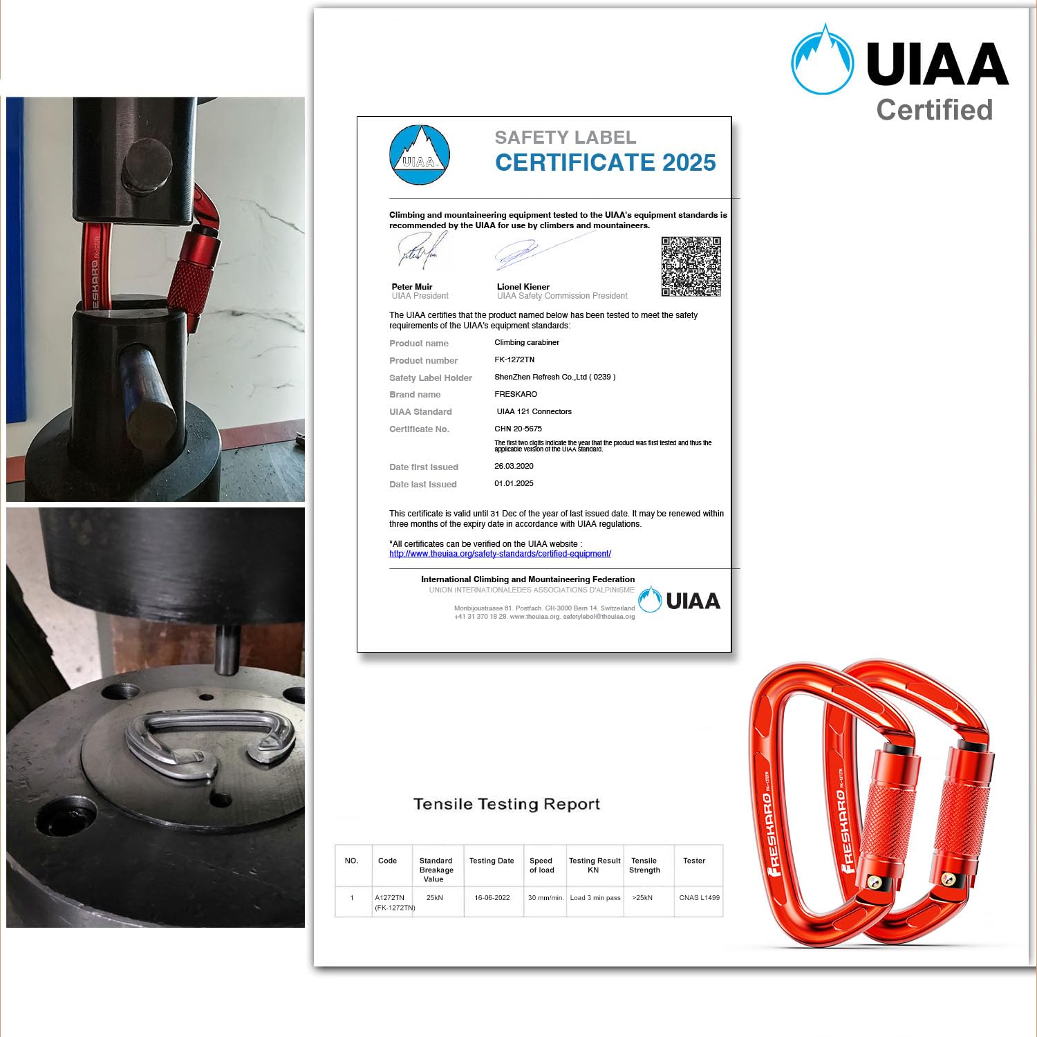 FresKaro Climbing Carabiner Clips Heavy Duty, UIAA Certified 25kN Auto Locking Carabiners, Twist Lock, 7075 Aluminium, Lightweight, Rust Free, for Rappelling, Hiking etc, 4Inch, Red, 2 Pack